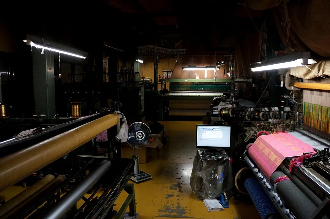 La petite usine Toraya en plein coeur de Fujiyoshida, où Hitari Textile fait tisser ses produits : The little Toraya Factory, in the Fujiyishida city center, where Hitari Textile have their fabric woven :