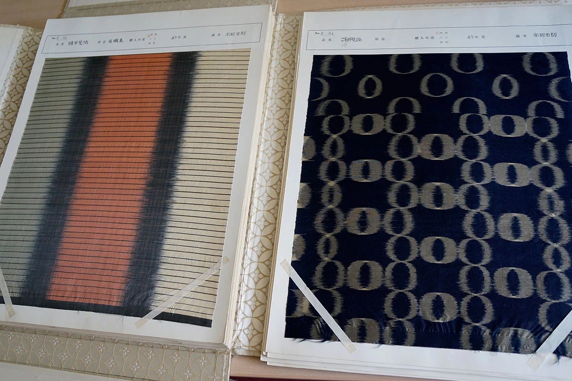 Quelques exemples d’étoffes centenaires conservées au Fuji Industrial Center : Some examples of century-old fabrics kept in the Yamanashi Prefecture Fuji Industrial Center :