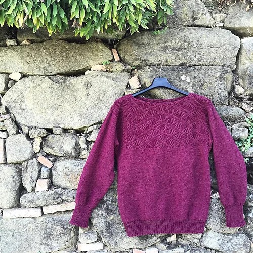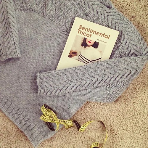 Puis j’ai commencé les antibiotiques et je me suis mise hier à aller mieux et à méditer sur un Topdown-Saddle-Shoulders-à-tes-souhaits en Alpaga de chez La Droguerie . Je crois que le virus de la torsade m’a repris! Les 2 machins ce sont les épaules :