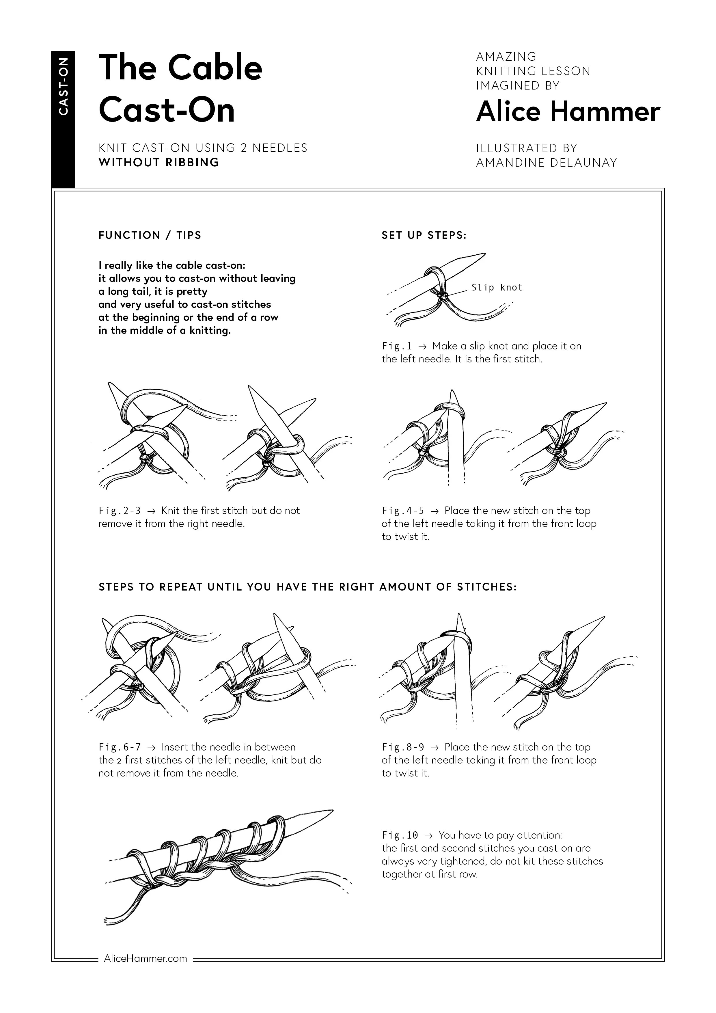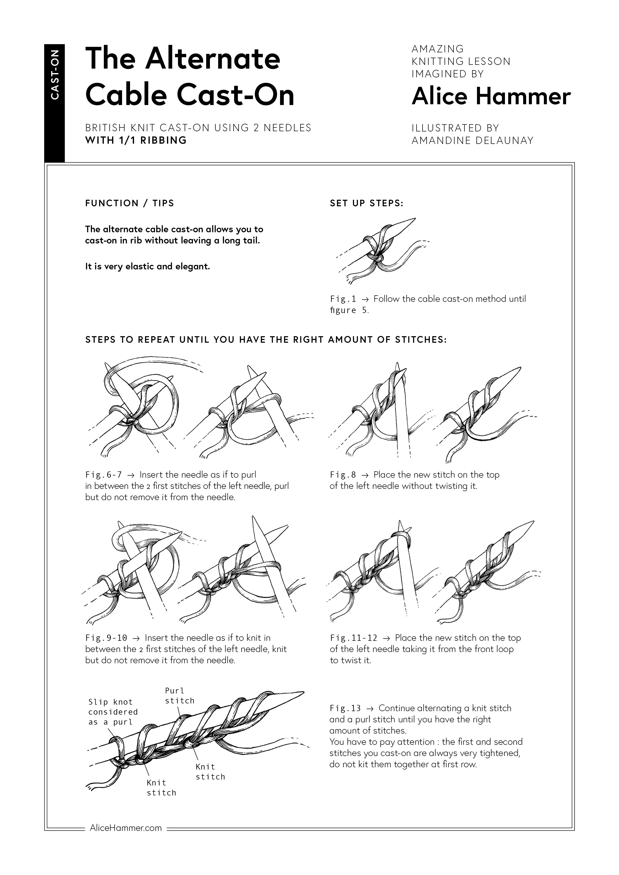 – le Alternate Cable Cast-on, le montage élastique parfait pour commencer par le bord-côtes de la cheville