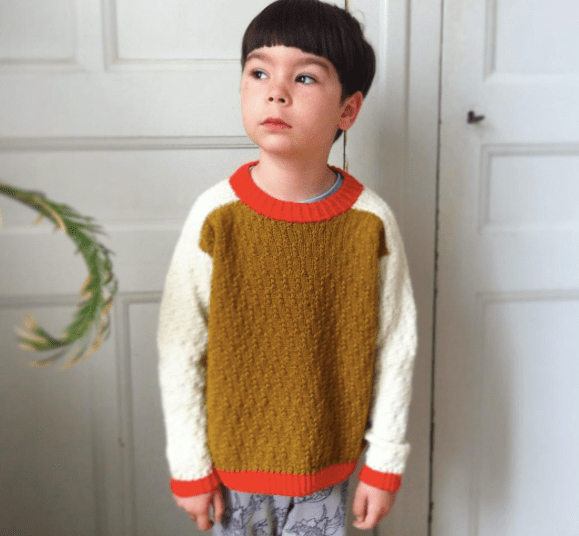 Un modèle enfant, le pull de Gaby tricolore, le test est plus long que prévu on a des galères. Ce n’est pas un modèle simple, moi j’aime bien alterner les projets autoroute (genre du full jersey en rond) et les constructions où il se passe des trucs. C’est un modèle qui est le petit frère du cardigan Annouchka mais tricoté en top down. Je crois que j’en fais baver à mes pauvres testeuses, j’ai du faire pas mal de modifications en cours de route. Je vous mets la photo de celui d’Annouchka ça vous changera de Gaby (la vraie pas le cardigan).