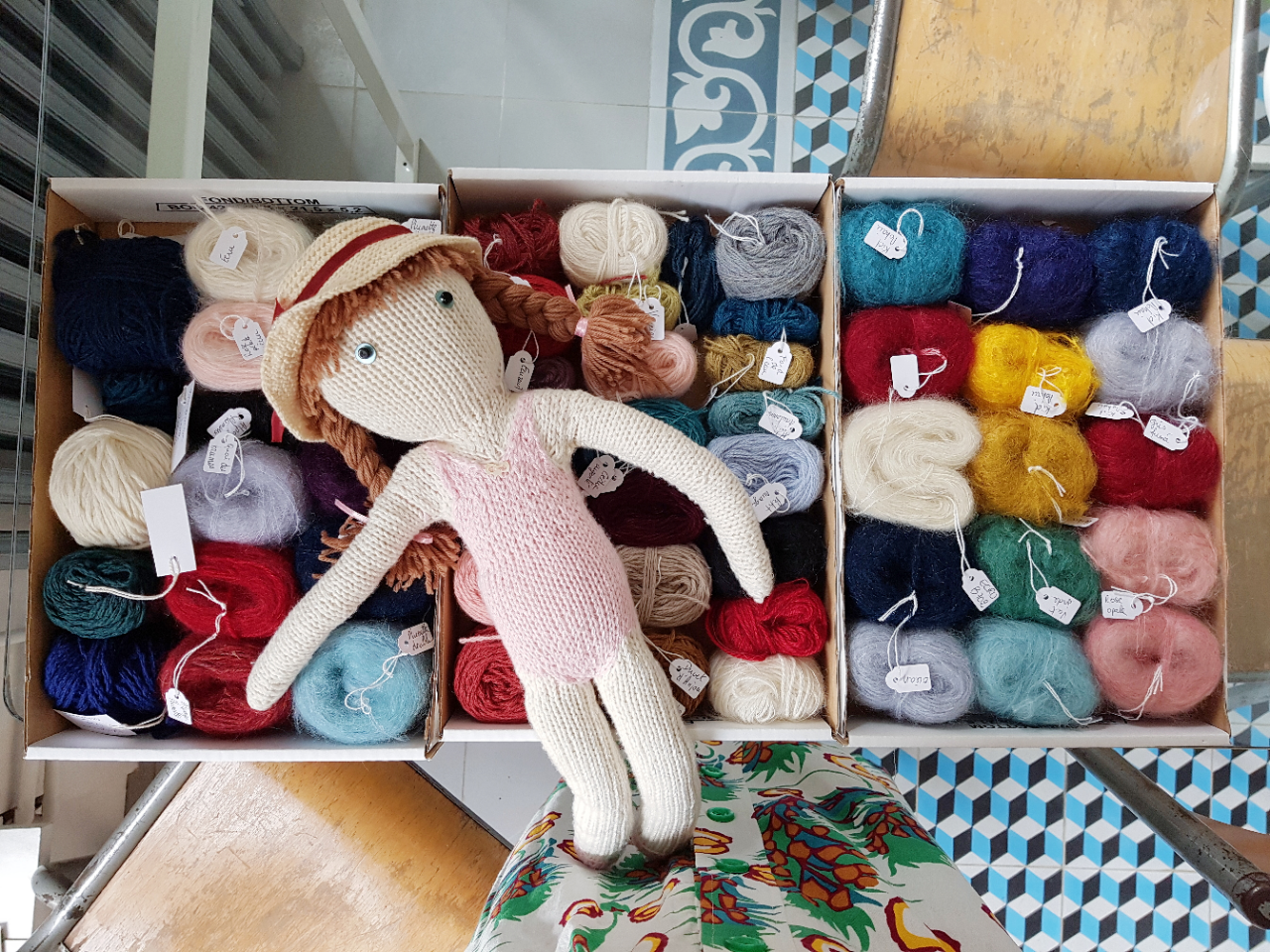 Connaissez-vous Cécile et Perlette ? Cécile est à l’Ecole de la Maille et elle fait un stage au bureau avec nous ce mois-ci ! Et ces jours-ci, elle habille Perlette la poupée de La Droguerie qui a froid aux cuisses depuis quelques mois (ma grand-mère me l’a tricotée ce printemps et la pauvre attend toujours sa garde-robe). Quels modèles Alice Hammer x La Droguerie aimeriez-vous voir dans la petite penderie de Perlette ? Cécile est en train de lui confectionner un petit Nuits Parisiennes et c’est plutôt super mignon.