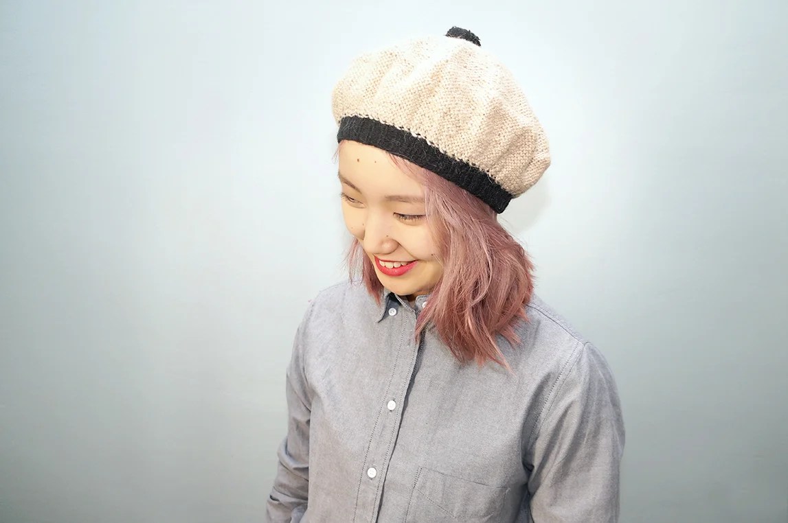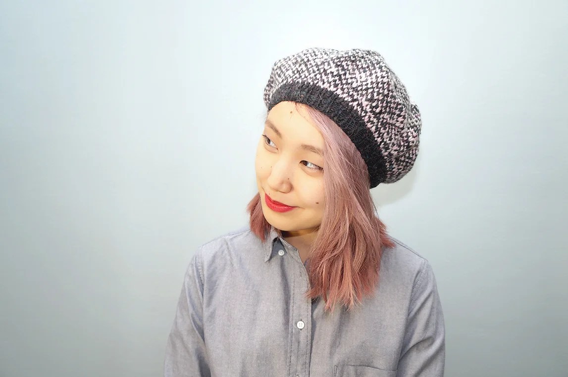 Et je suis très contente qu’on parle de béret, je suis gaga de bérets depuis quelques années. J’ai commencé avec un premier modèle il y a 4 ans, le béret Caroline bicolore (disponible dans Carnet d’hiver) avec son pompon : Click click sur la photo vers le Carnet d’hiver !