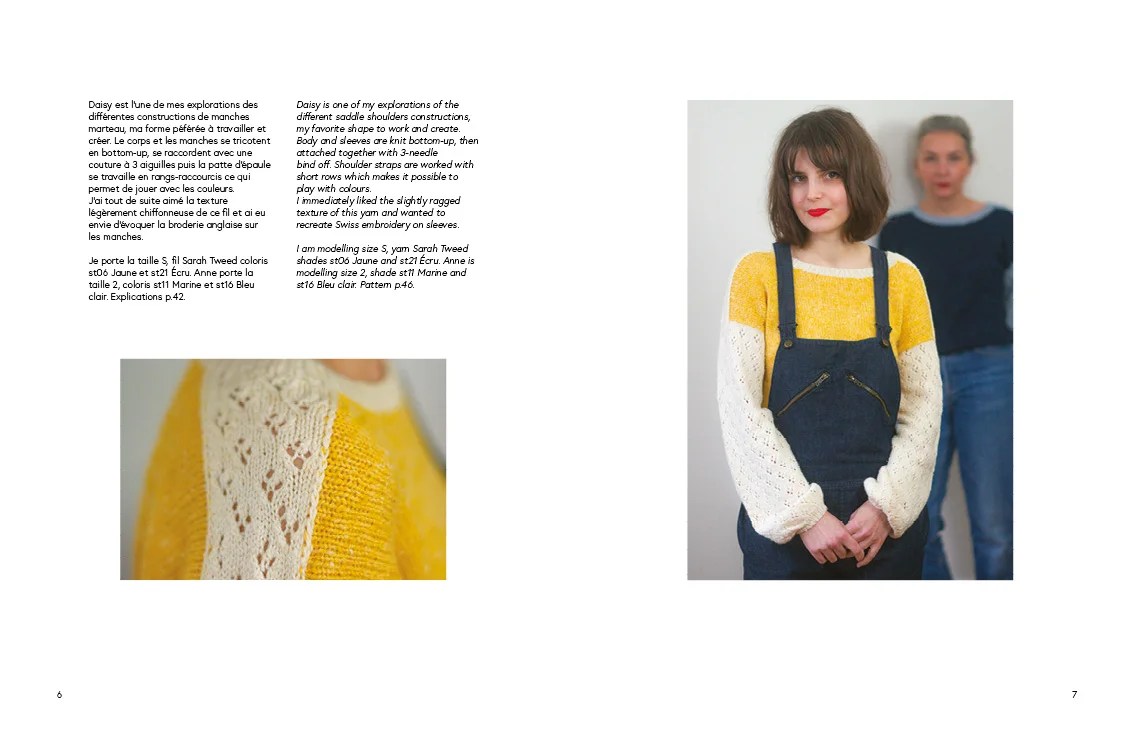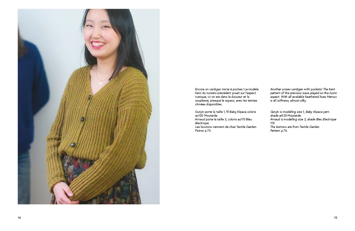 J’ai encore eu beaucoup de plaisir à travailler à cette parution. Comme la dernière fois tout est auto financé et édité, et la laine offerte par BC Garn. Je tiens d’ailleurs à remercier mes complices Britta et Caroline qui m’ont encore suivie dans mes idées folles. Il y a tout de même un peu de nouveautés, par exemple la couverture est un peu plus épaisse et texturée, le Français et l’Anglais sont réunis dans la même copie. J’ai des guests sur les photos : Gunjin vous la connaissez bien vous voyez son visage sur mon site depuis quelques années maintenant. Annouchka vous l’avez peut-être croisée sur AEF ou CSF, c’est une fidèle amie / testeuse / partenaire de tricot et Arnaud qui a encore une fois fait de belles photos et bien plus encore. J’ai maintenant plus d’une vingtaine de merceries partenaires chez qui vous pouvez trouver Club Tricot que je tiens à remercier chaleureusement, et je suis déjà en train d’embrayer sur le 3 !