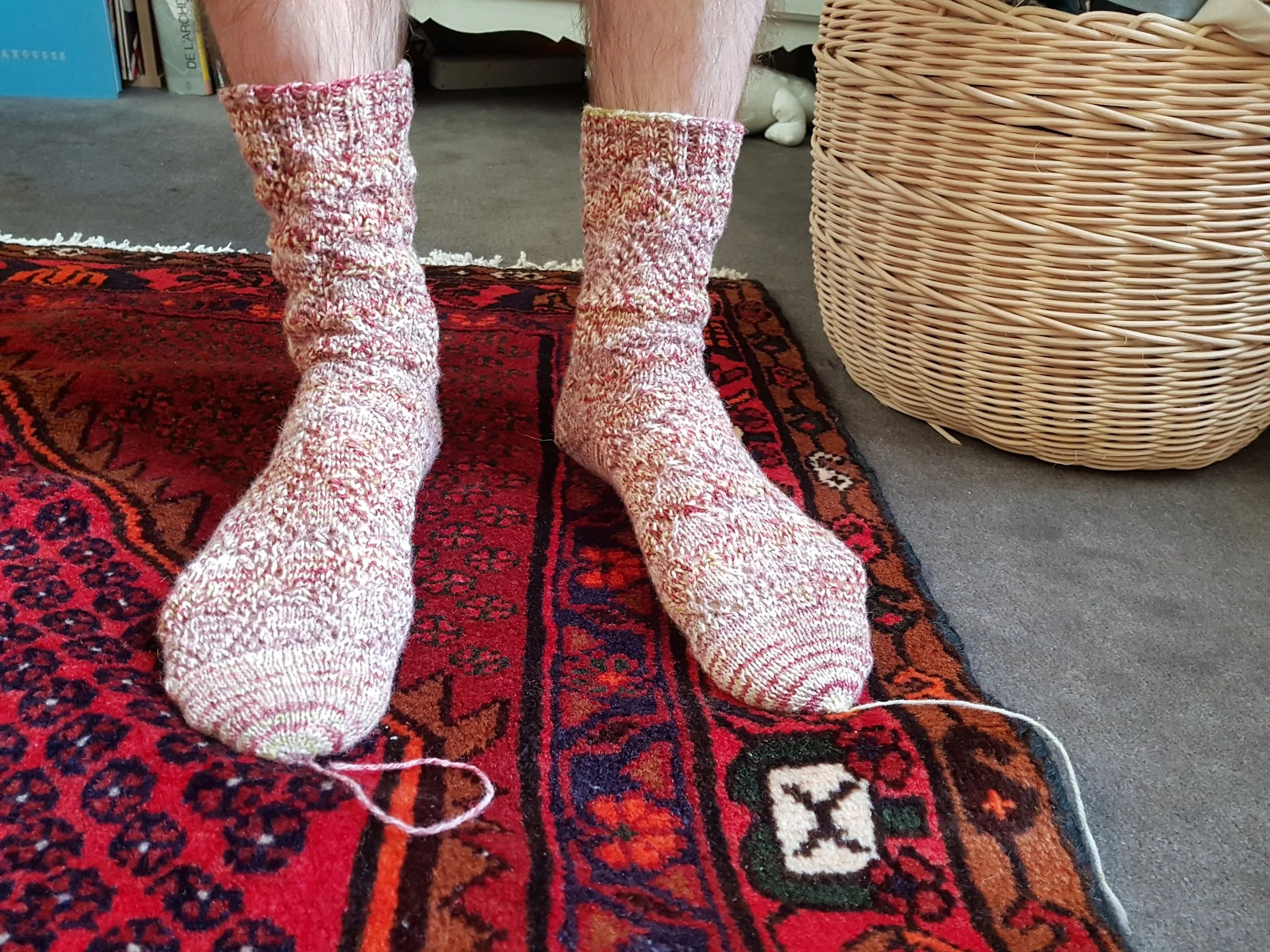 Et en ce moment sur mes aiguilles, je fais une petite pause entre deux numéros et je me suis fait plaisir en tricotant des chaussettes de montagne pour Arnaud avec la pelote de Mondim offerte par Annouchka cet été. Tout le monde m’avait prévenu que cette laine est super, et ben c’est vrai. Ça doit vous paraître bizarre puisque je suis consciente que j’ai beaucoup chance de recevoir tant de belles laines de mes partenaires, mais c’est une joie de pouvoir tricoter de temps en temps des laines de mon stash à moi que j’ai achetées par coup de coeur, sans projet en tête. Les chaussettes étant finies bloquées et adoptées par leur nouveau propriétaire, je me suis lancée dans un châle avec les 2 écheveaux de Gotland que j’avais achetés chez The Little Grey Sheep au Fil de la Manche et qu’il me tardait d’avoir le temps de bobiner et travailler. Voilà, ce sont mes 2 projets avant des mois de tricot “collections” alors j’en profite à fond.