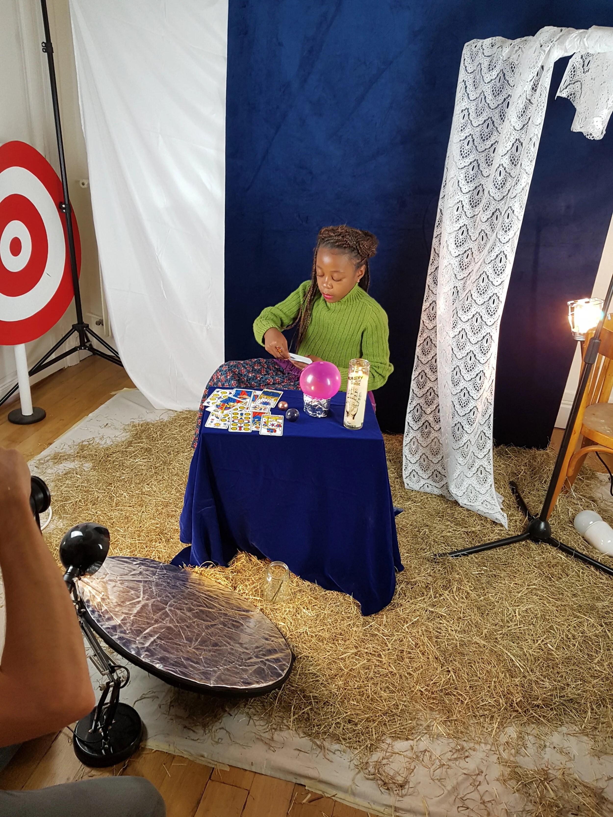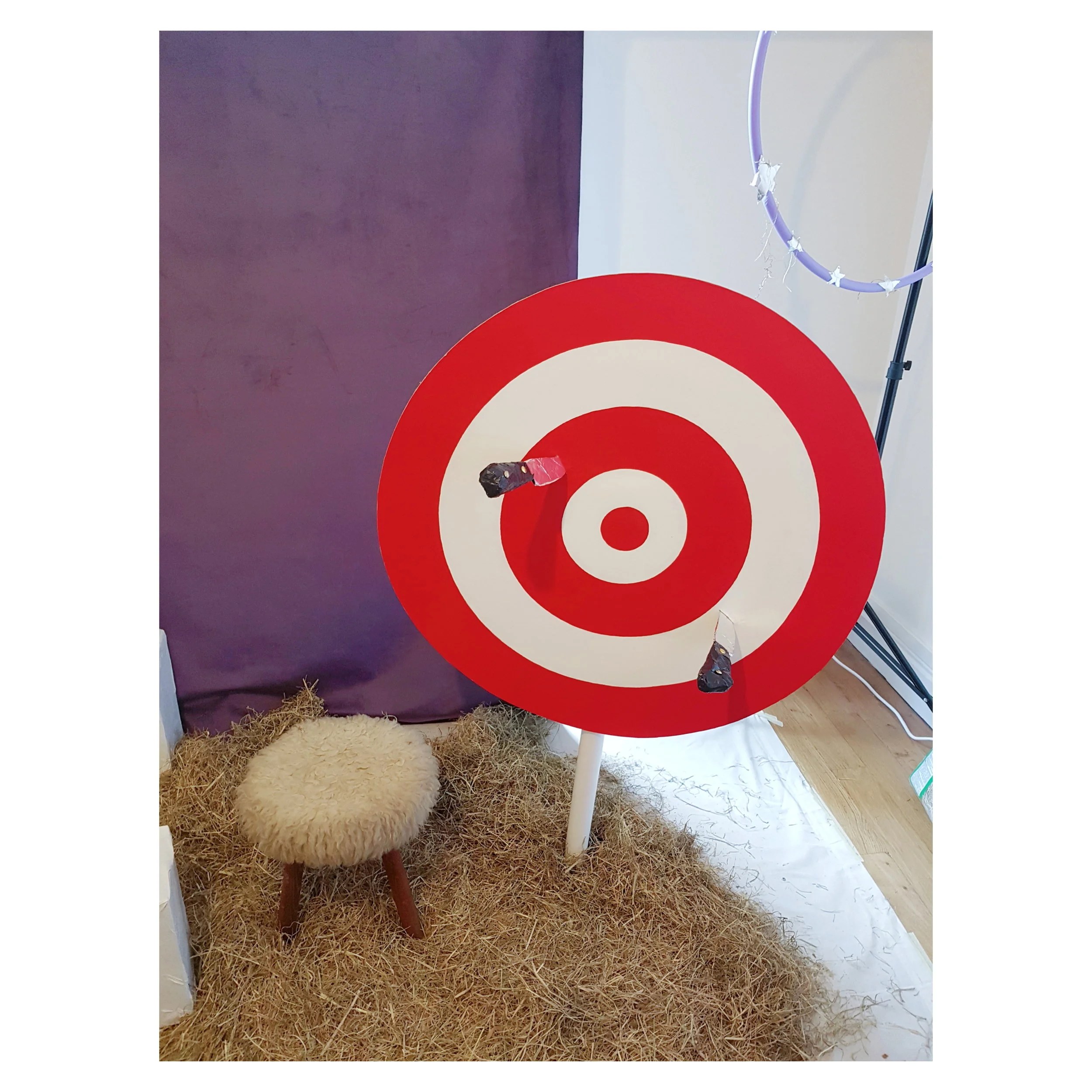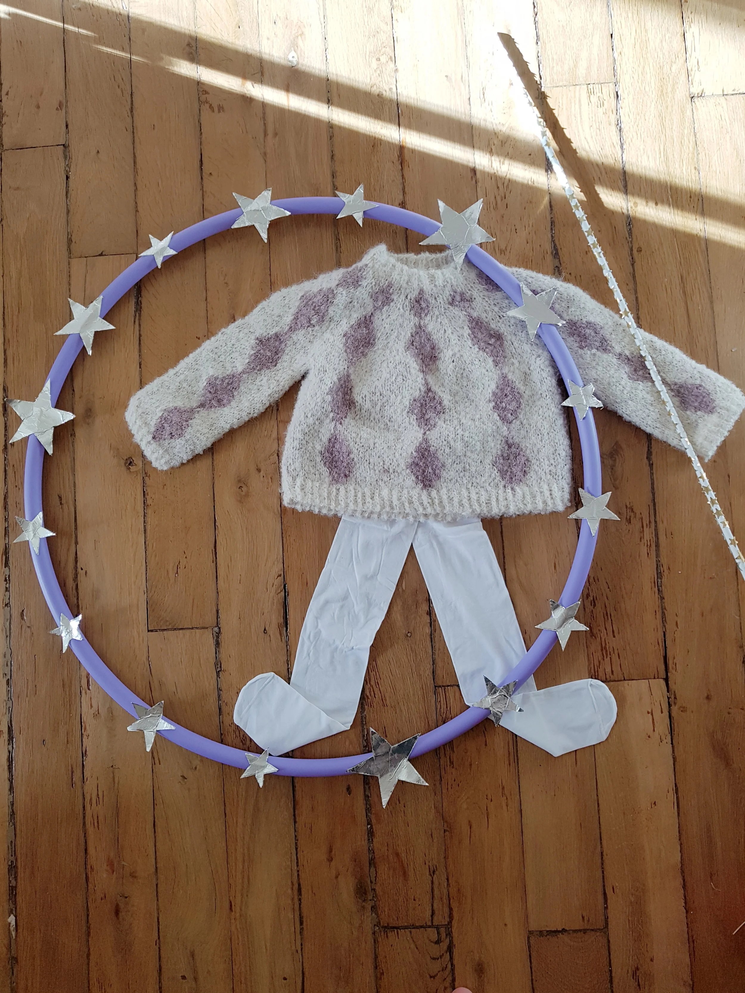 J’ai donc imaginé chaque tricot comme une part de la tenue d’un des personnages du cirque, et j’ai décidé pour les présenter de tirer le portrait à chacun de ces artistes. Comme je me suis lancée dans ce projet plus que fauchée, j’ai pu assouvir ma passion pour la création de décors en papier mâché et j’ai adoré devoir me creuser la tête pour bâtir toute une ambiance à (presque) zéro euros. J’ai bien sûr embarqué Arnaud dans mon aventure et je le remercie car sans lui je n’y serais pas arrivée. Il manie la colle et le papier alu comme personne.