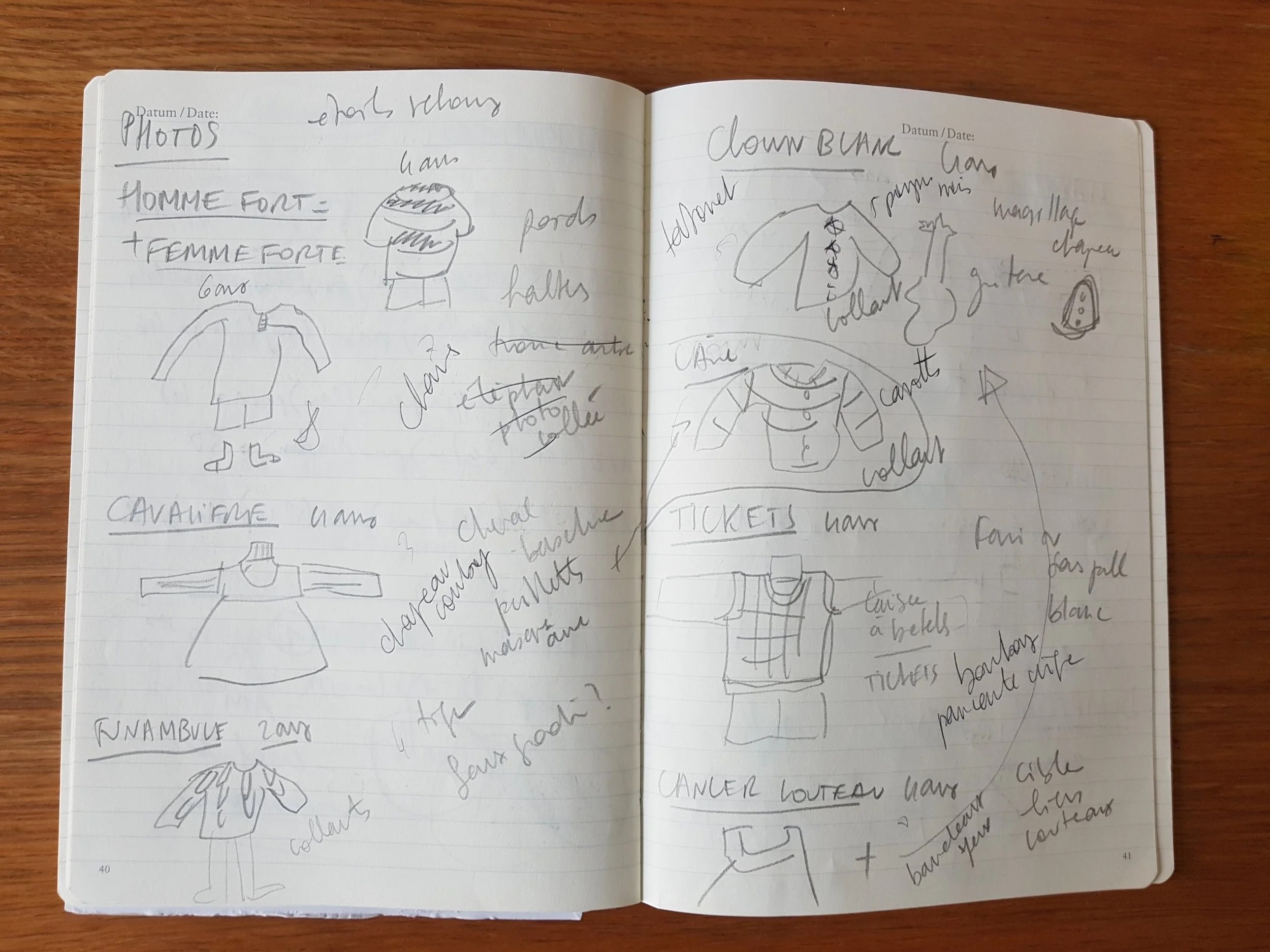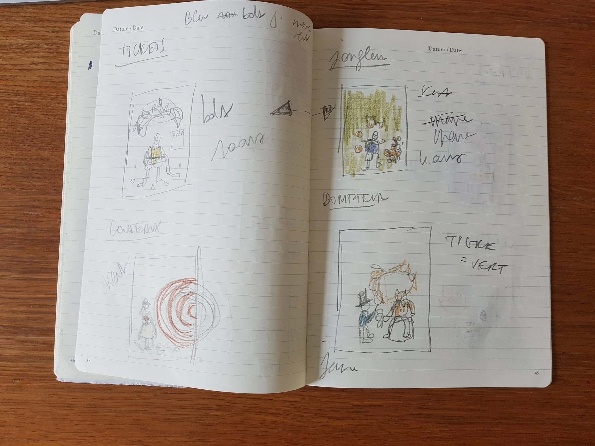 La première étape a été d’imaginer les scènes, attention croquis super professionnels… (Carnet offert par les gentilles organisatrices du Knit Eat festival)