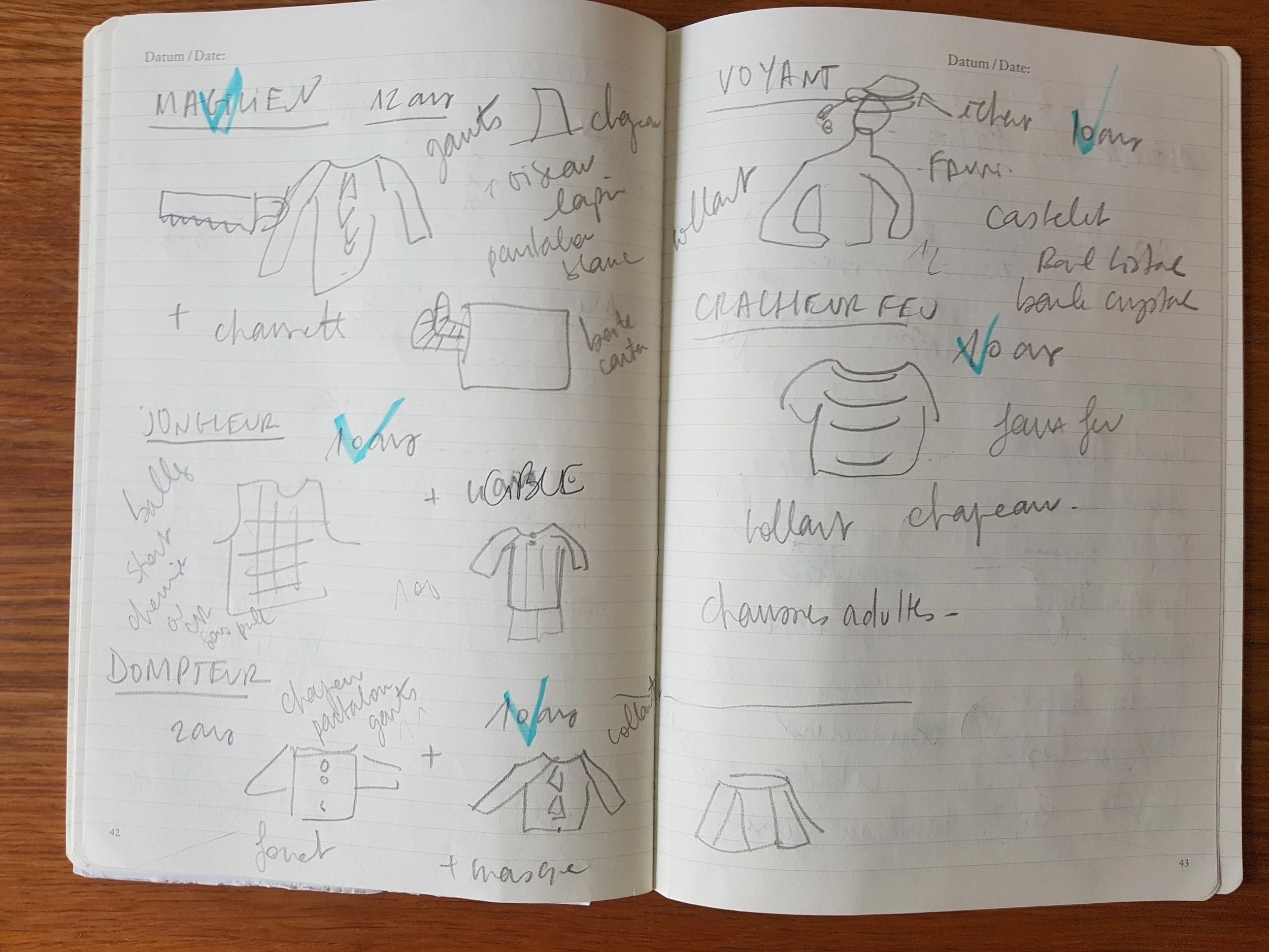 Après je me suis amusé à créer des petites tenues pour chacun de mes personnages, j’ai pu comme ça lister les accessoires qu’il me restait à trouver.