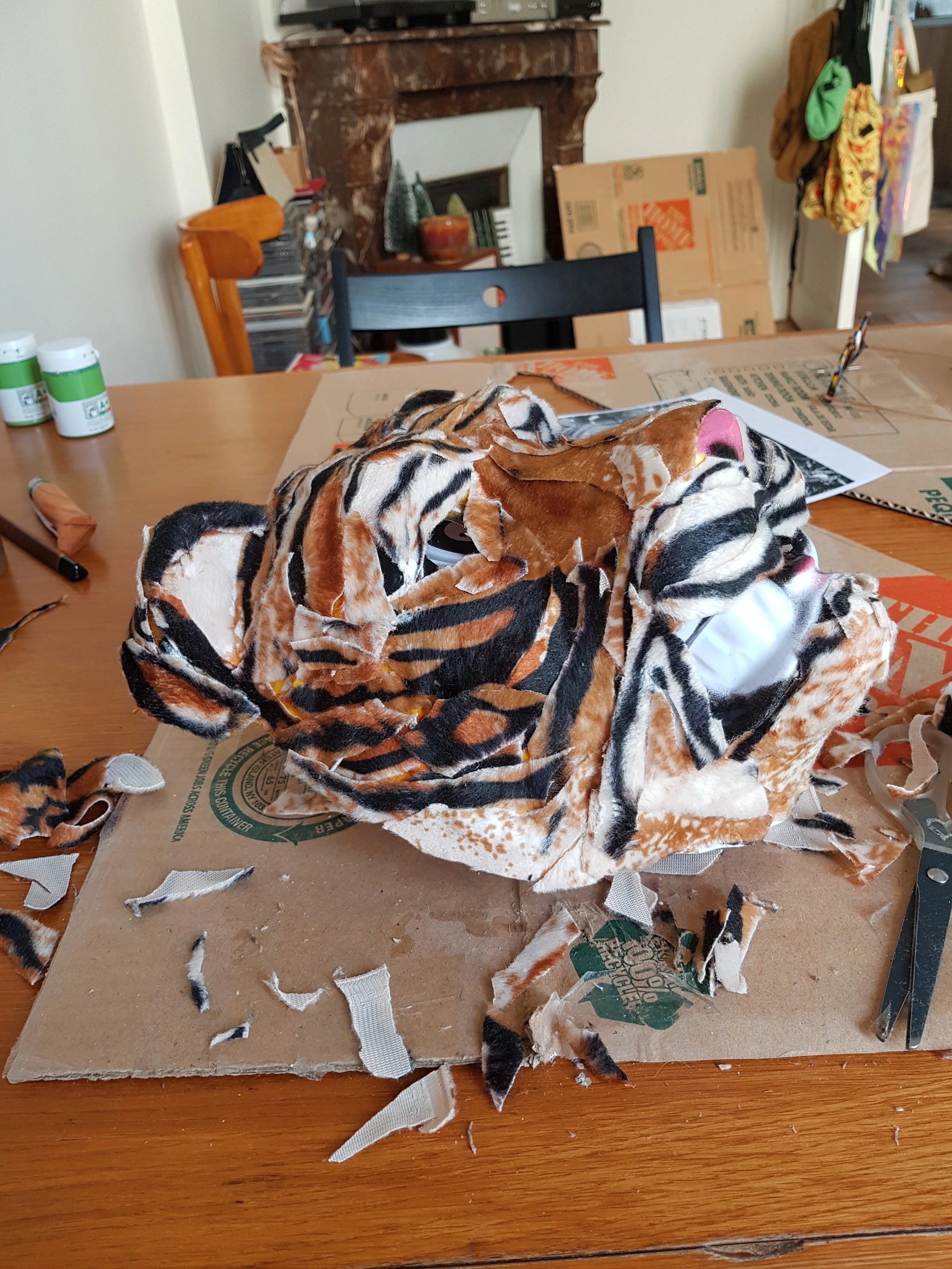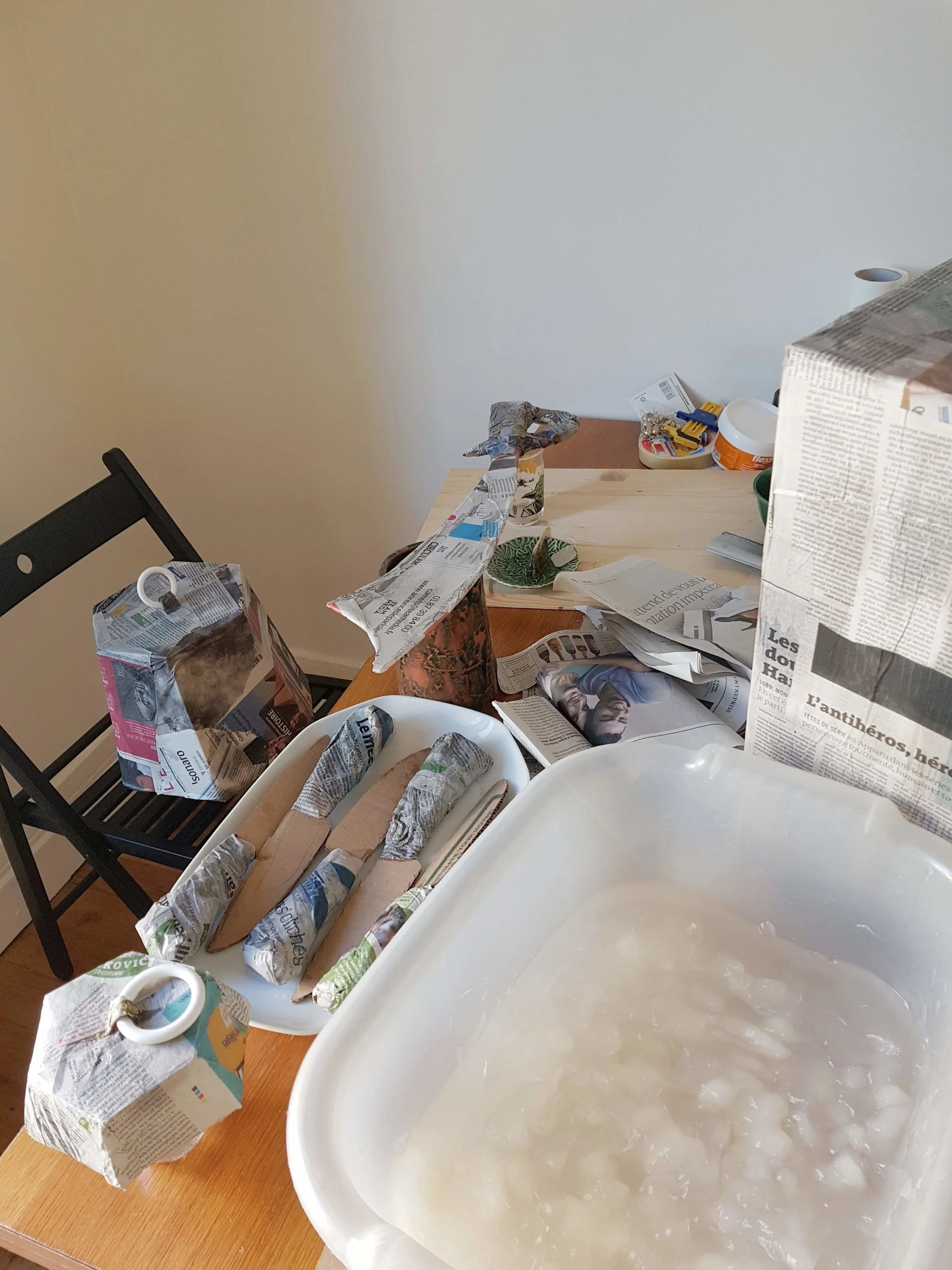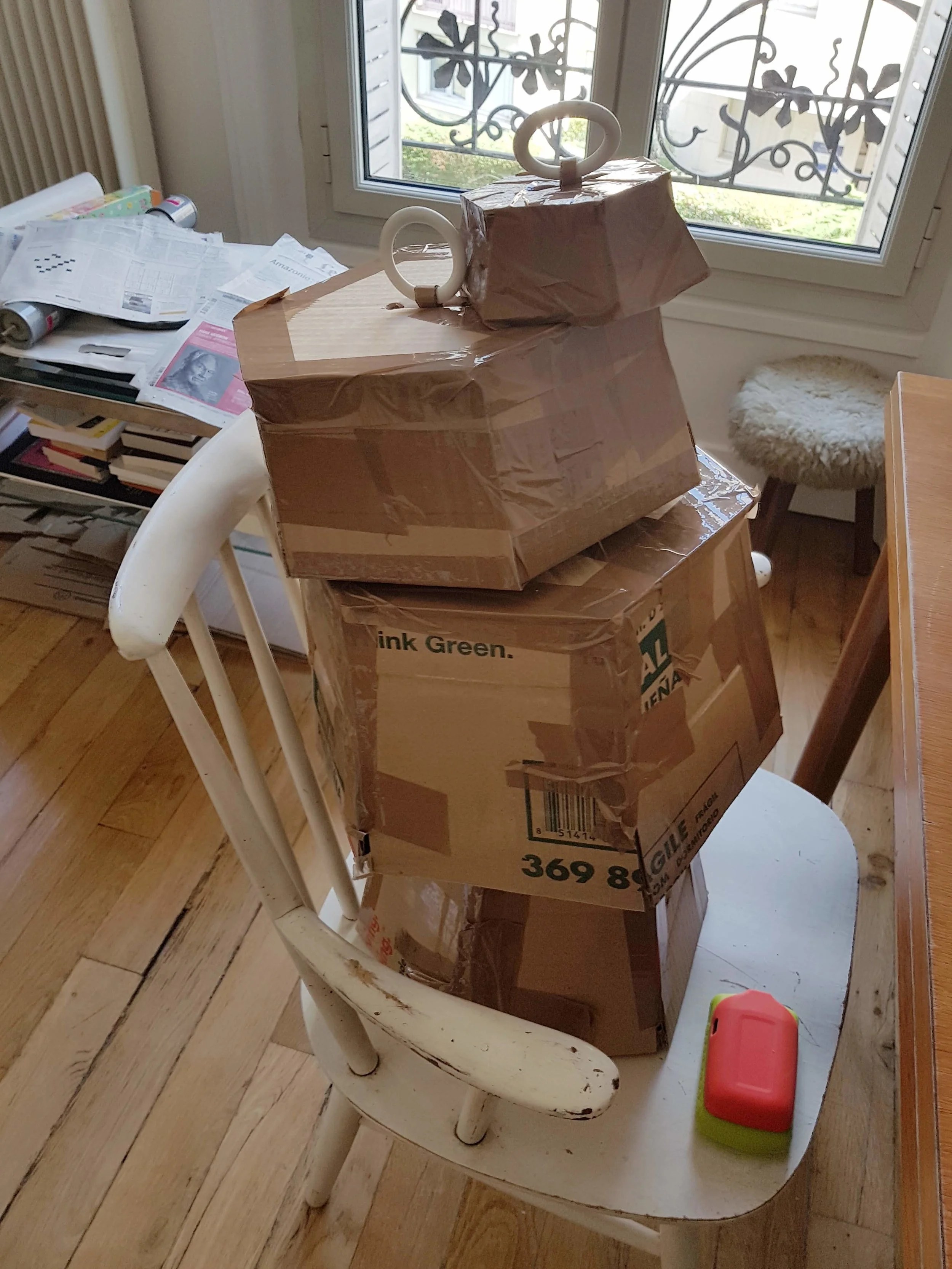 J’ai utilisé tous les cartons de la cave d’Arnaud pour créer des accessoires :