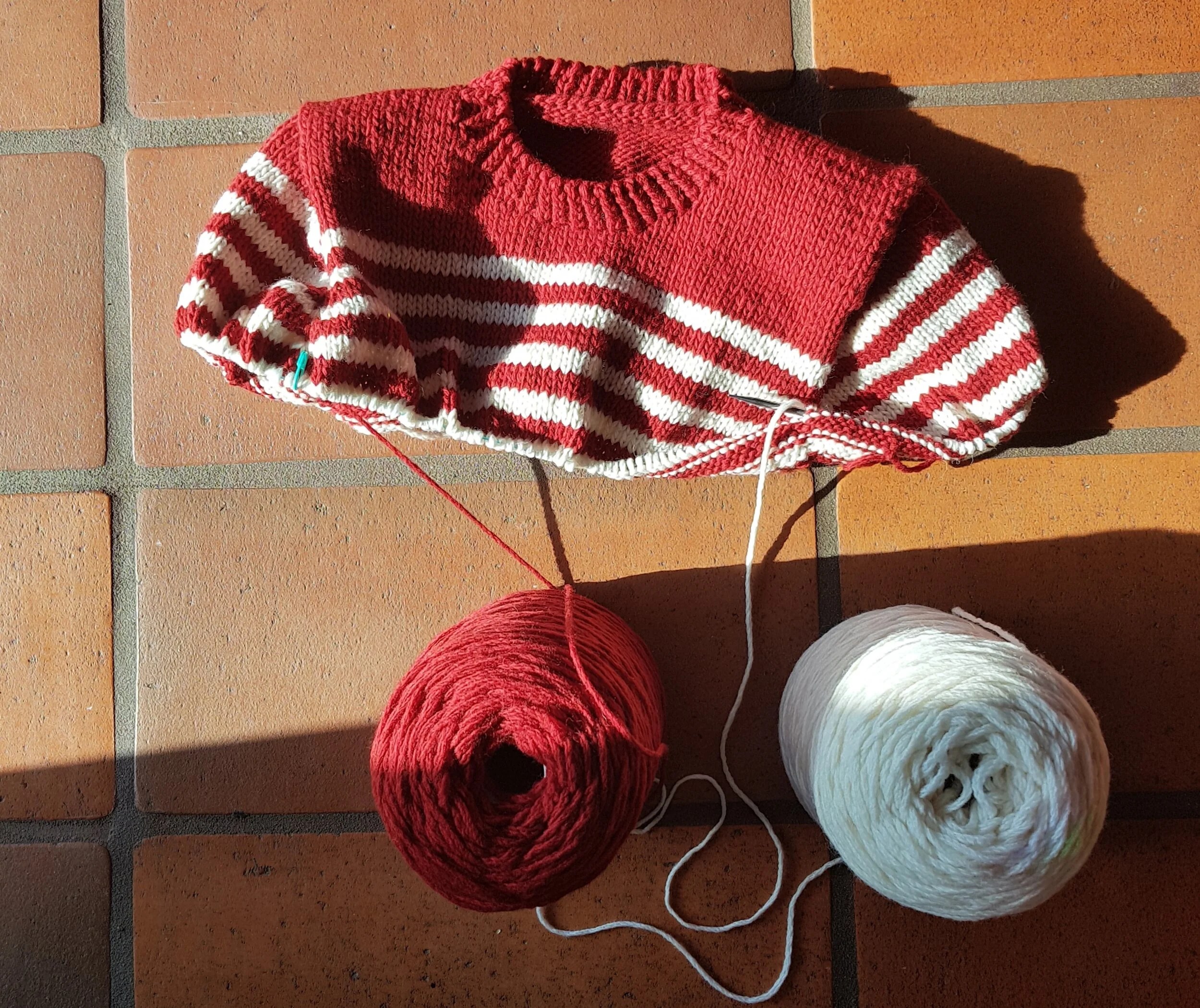 Je ne fais pas que ranger, je patronne et je tricote aussi. J’ai commencé la marinière pour Arnaud en Benjamine de La Droguerie. À vrai dire je l’ai commencée 4 fois. Je voulais me lancer dans une construction topdown avec les manches montées comme je l’avais fait pour le cardigan Hockney, mais la laine étant assez épaisse j’ai du trouver plein d’astuces et m’y reprendre à plusieurs fois pour que ce soit propre. Du coup j’ai décidé de la recommencer autrement, car je me dis que si c’est la galère pour moi ce sera aussi la galère pour vous.