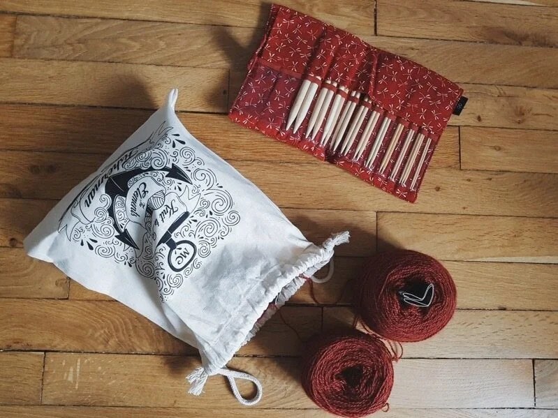 Un futur projet, en Maison Corlène achetée lors de la dernière édition de la Grande Mercerie. Comme je pense tricoter ce fil sur mes aiguilles en bois, tout le kit est du voyage.