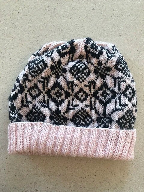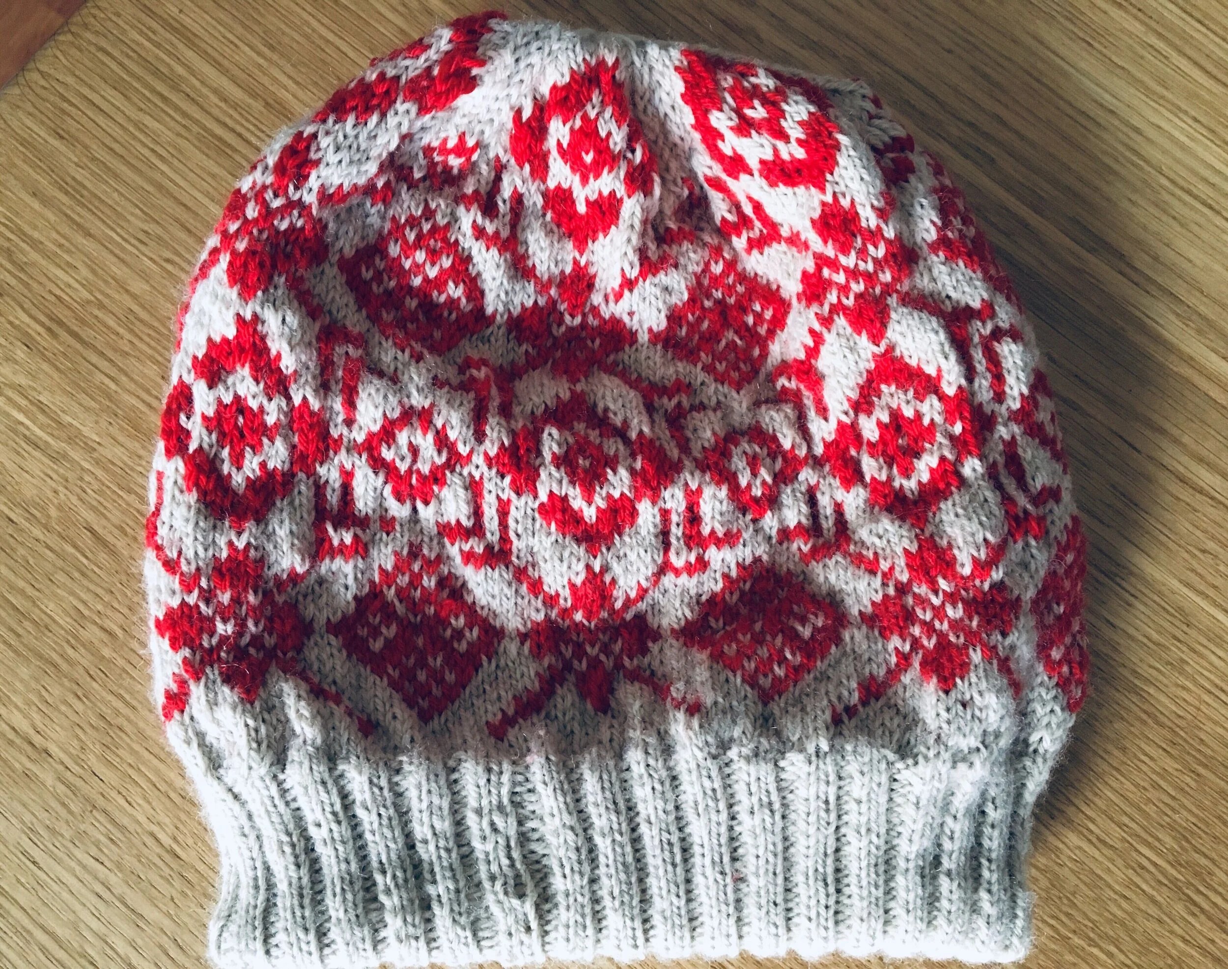 J’ai choisi des coloris éclatants et des motifs floraux pour passer un hiver joyeux. Le bonnet se tricote du bas vers le haut, avec un grand rabat en côtes pour avoir bien chaud aux oreilles.