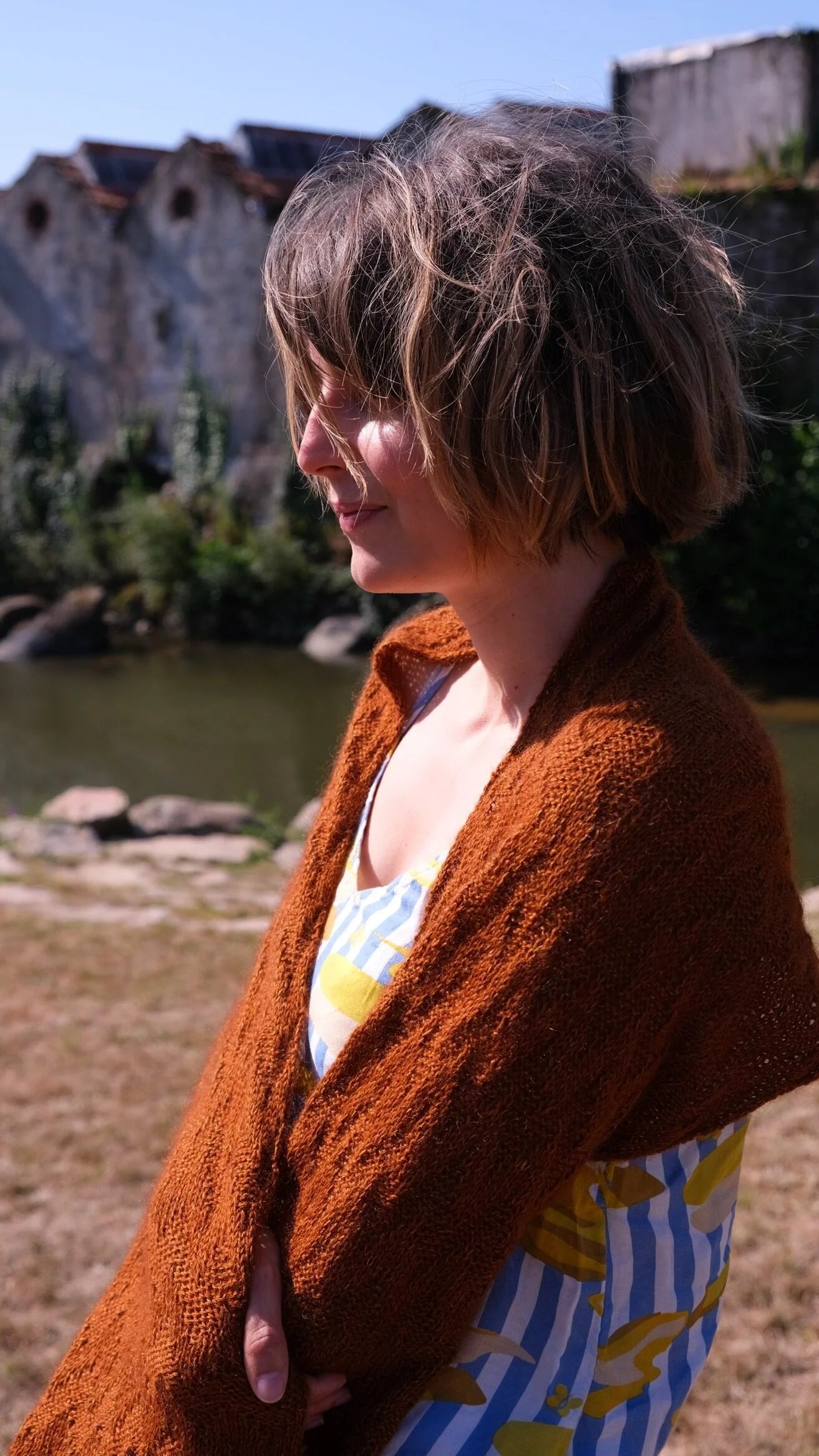 Vous reconnaitrez sûrement les teintes éclatantes de la Caresse de La Droguerie, teinte à l’usine Couleurs et Textiles qui a bien entendu un chapitre dans livre ! C’est un fil que j’ai beaucoup utilisé, auquel je trouve n’a pas d’équivalent. Je ne fais que des modèles très simples avec ce fil dont le tombé et la palette de coloris se suffisent !