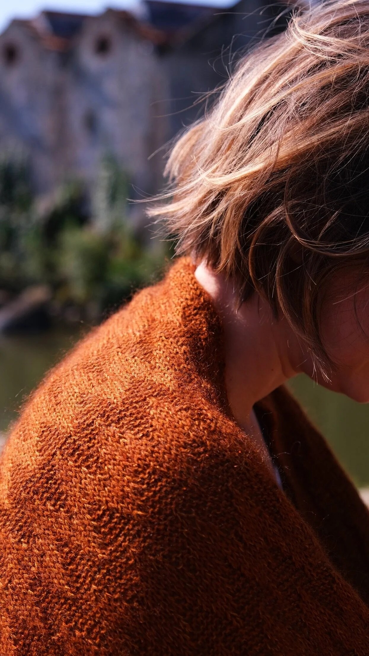 Je vous présente donc Zélige, qui se tricote de bas en haut, en rond et qui est le pull peut-être le plus débutant du livre. J’ai voulu proposer des patrons de tous les niveaux, pour toutes les envies aussi car même les experts tricot ont parfois besoin d’un projet de jersey relaxant. C’est un des basiques de la collection, facile à porter.