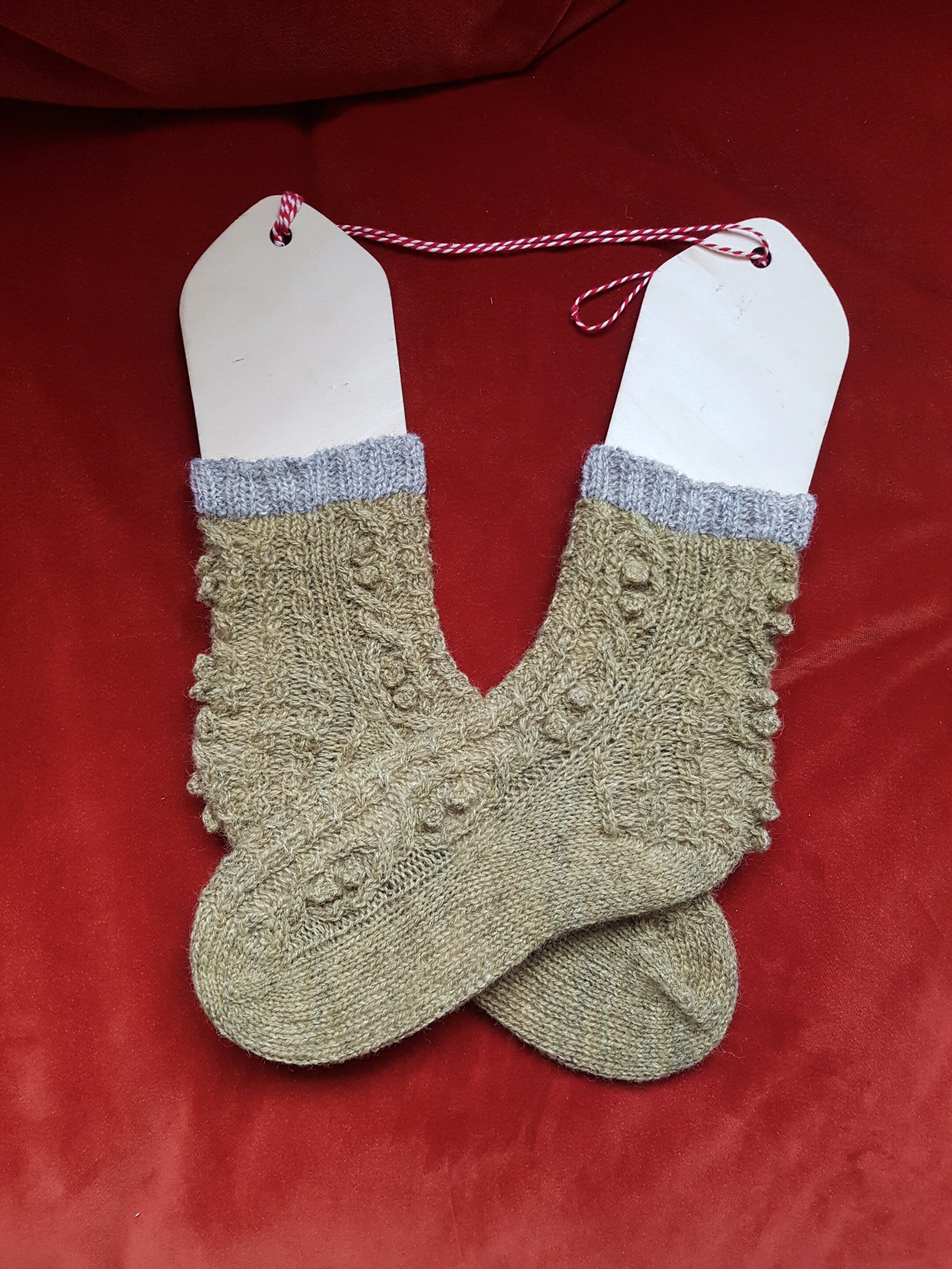 Il y a un peu plus de fioritures mais comme ce n’est pas ma première paire de Hockney et que c’est les chaussettes c’est du rapidos, ça ne m’a pas demandé trop d’attention. Et je suis partie sur une nouvelle paire de chaussettes improvisée (c’est la seule pièce de vêtement que je me sente capable de tricoter en ce moment) avec un fil qu’Arnaud m’a offert en 2018, je crois que c’est de la Bien Aimée mais je ne trouve plus l’étiquette.