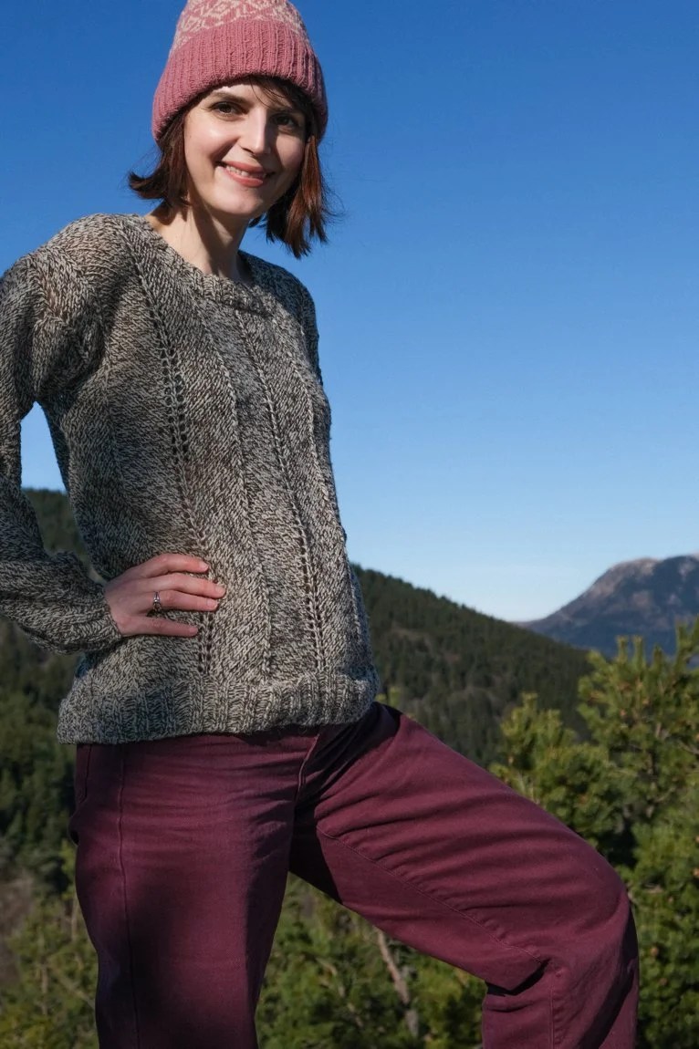 Je vous présente tout d’abord Prosper, le pull à chevrons imaginé pour la belle laine Tourbe Chinée de Terroir Laine.