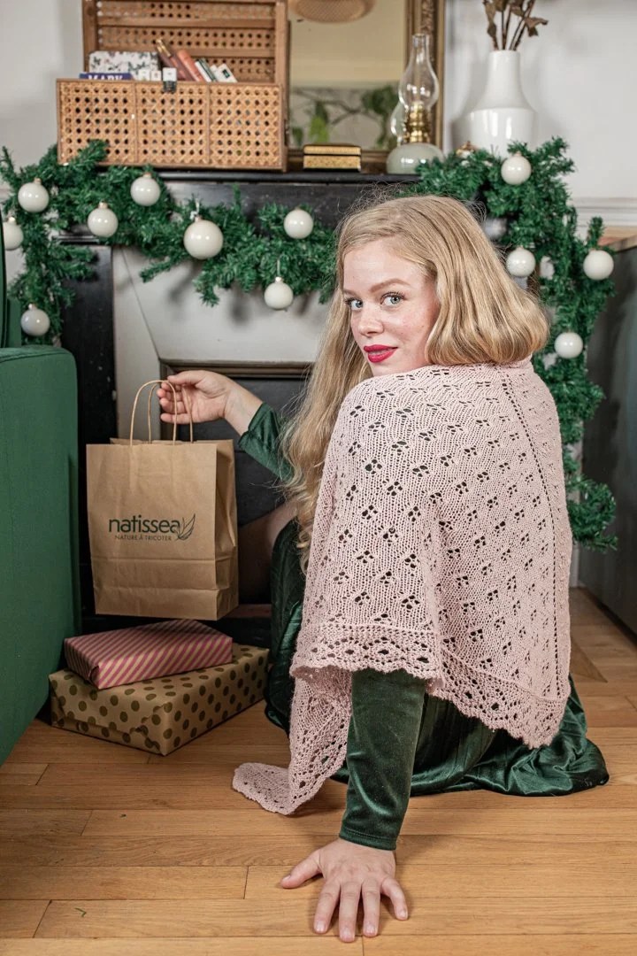 Changeons d’univers avec un modèle en fibres végétales maintenant ! Voici le châle Hellébore que vous aviez peut-être découvert dans la box de Noël de Natissea.