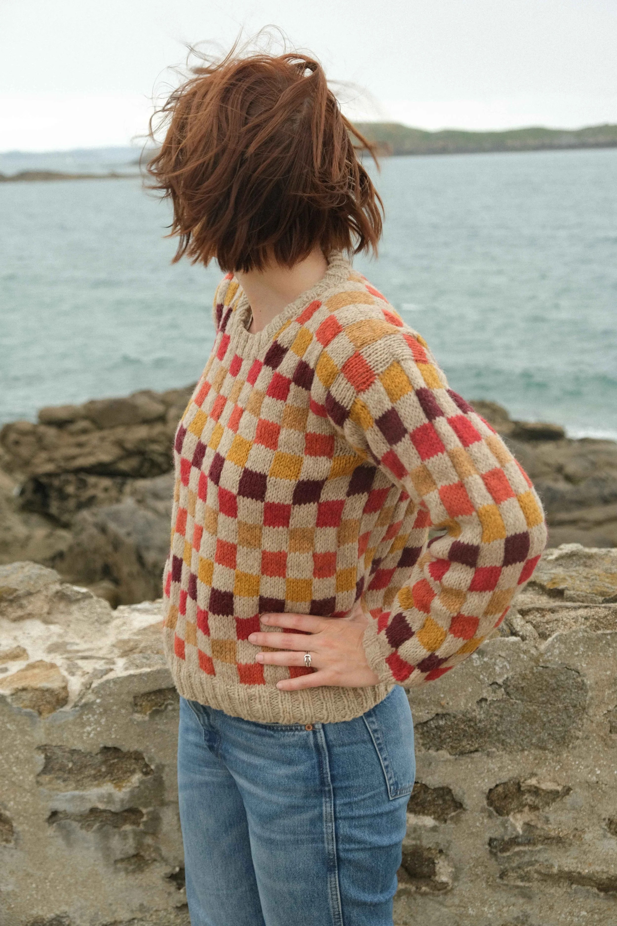 On reste dans les projets de laine local (mais on change de région), voici Lustucru, tricoté avec la belle Roussin Alpaga de Bouclelaine ! Je ne vous présente plus le travail de Brigitte et Clotilde dont vous pouvez lire le portrait et la démarche dans French Tricot ! Au départ quand j’ai imaginé Lustucru je voulais un pull en damier bicolore, et puis dès que j’ai vu les échantillons de toutes les couleurs je n’ai pas pu faire de sélection alors je suis partie sur un modèle à 6 couleurs.