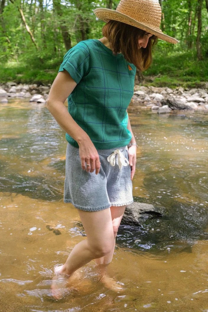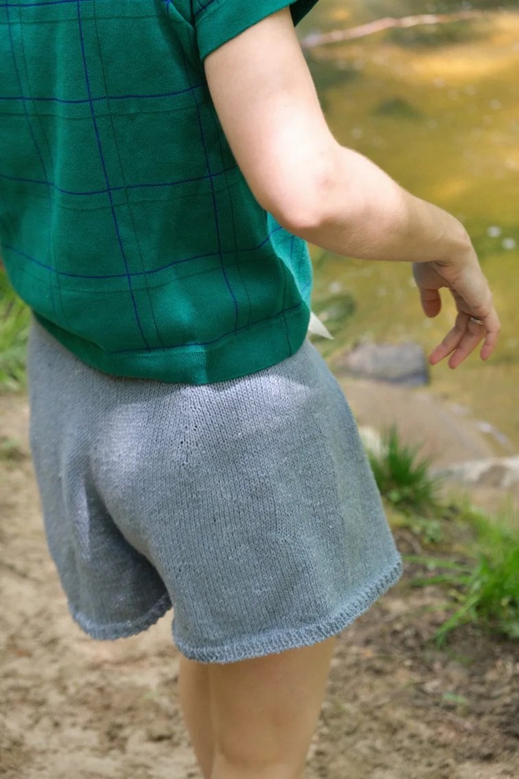 Aujourd’hui je vous présente un modèle qui me met en joie. Si vous me suivez depuis quelques années, vous savez que j’adore me tricoter des “bas”, et ce nouveau short vient compléter ma collection.