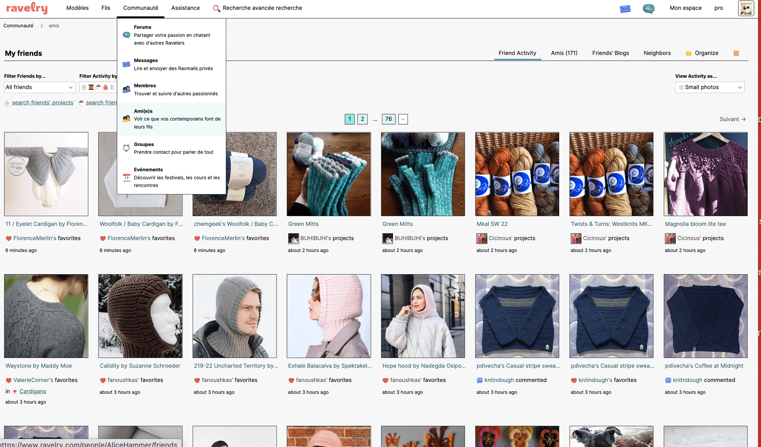 Vous pourrez ajouter des amis et voir ce que vos amis tricotent ou likent. C’est super pour échanger et faire des découvertes.