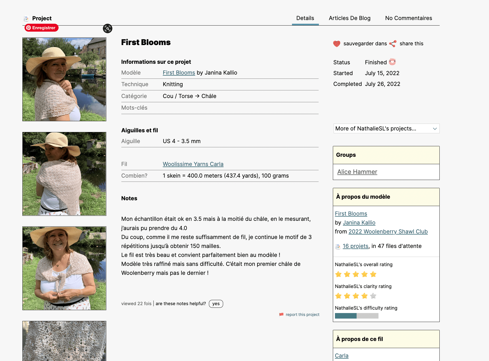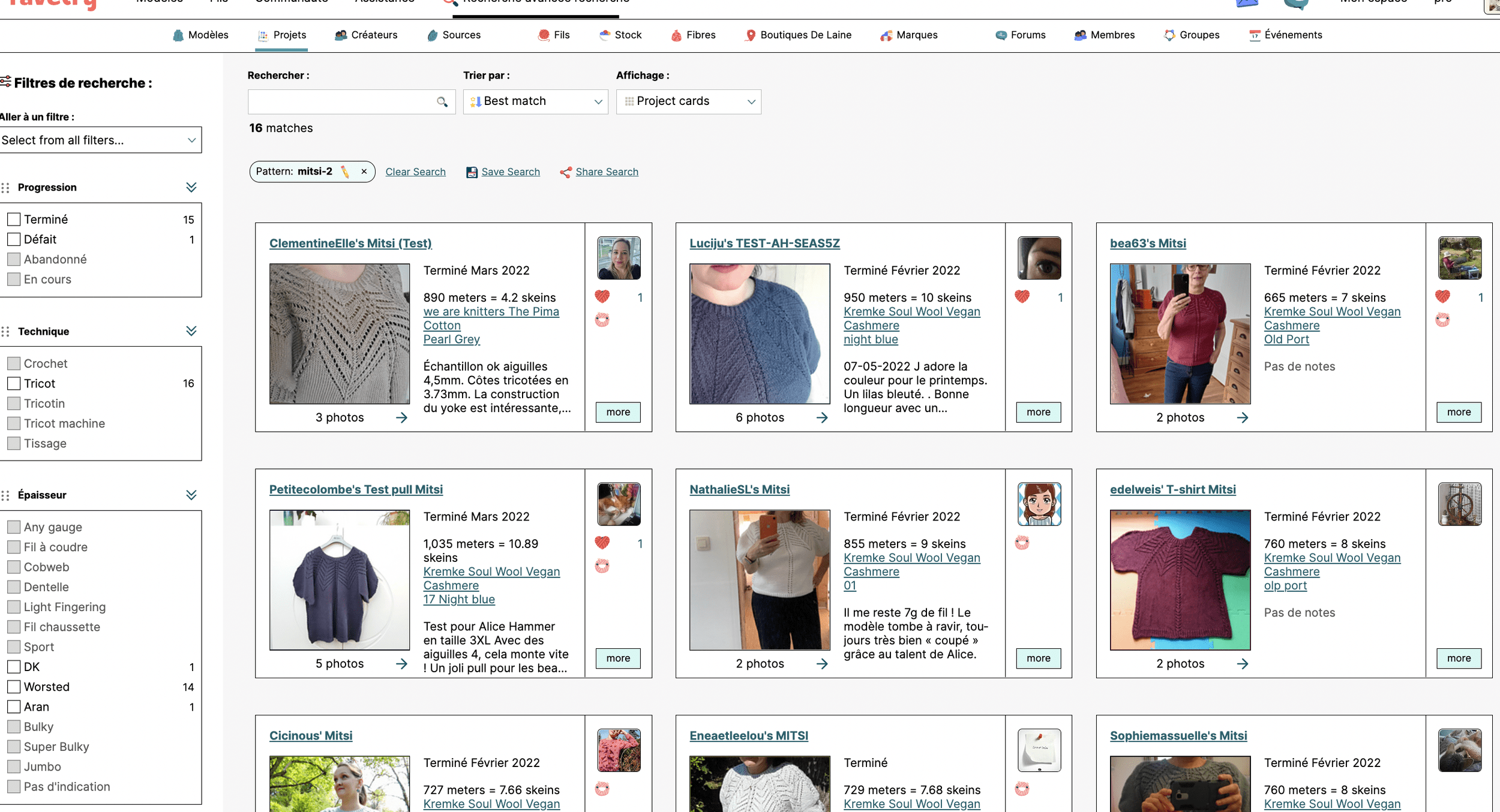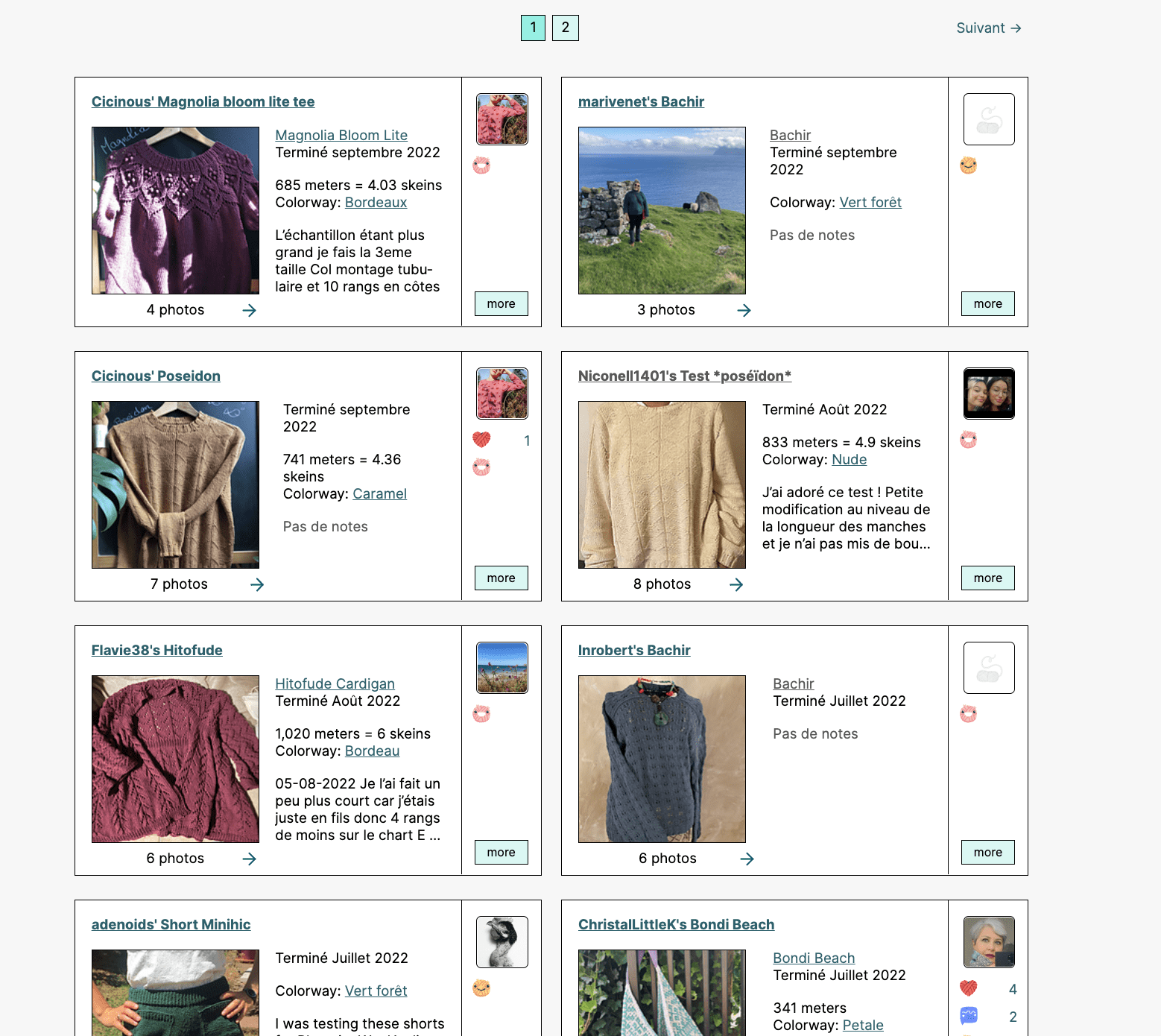 C’est comme ça qu’avant d’acheter un modèle vous pouvez aller le voir dans différentes versions, voir un peu quels fils les autres ont utilisé (ça aide beaucoup si on ne souhaite pas utiliser le fil préconisé par le designer) ou s’ils ont des remarques sur le modèle. Si vous aimez le projet de quelqu’un vous avez peut-être les mêmes goûts ! N’hésitez pas à aller voir ses autres projets, son profil et à le demander en ami vous verrez ainsi ce qu’il like et tricote.