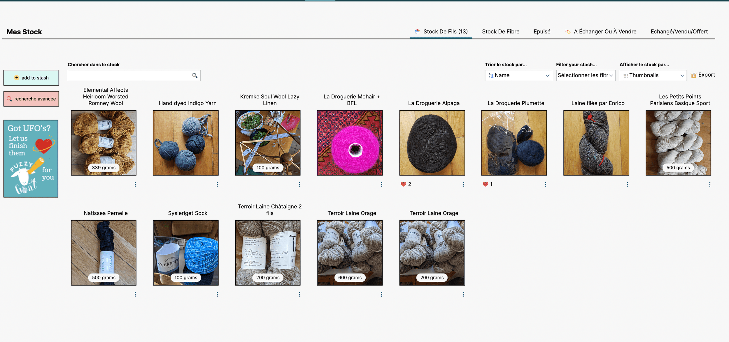 Vous pouvez rentrer tout votre stock de laine selon le même principe que les projets et obtenir des idées de patrons à y associer.