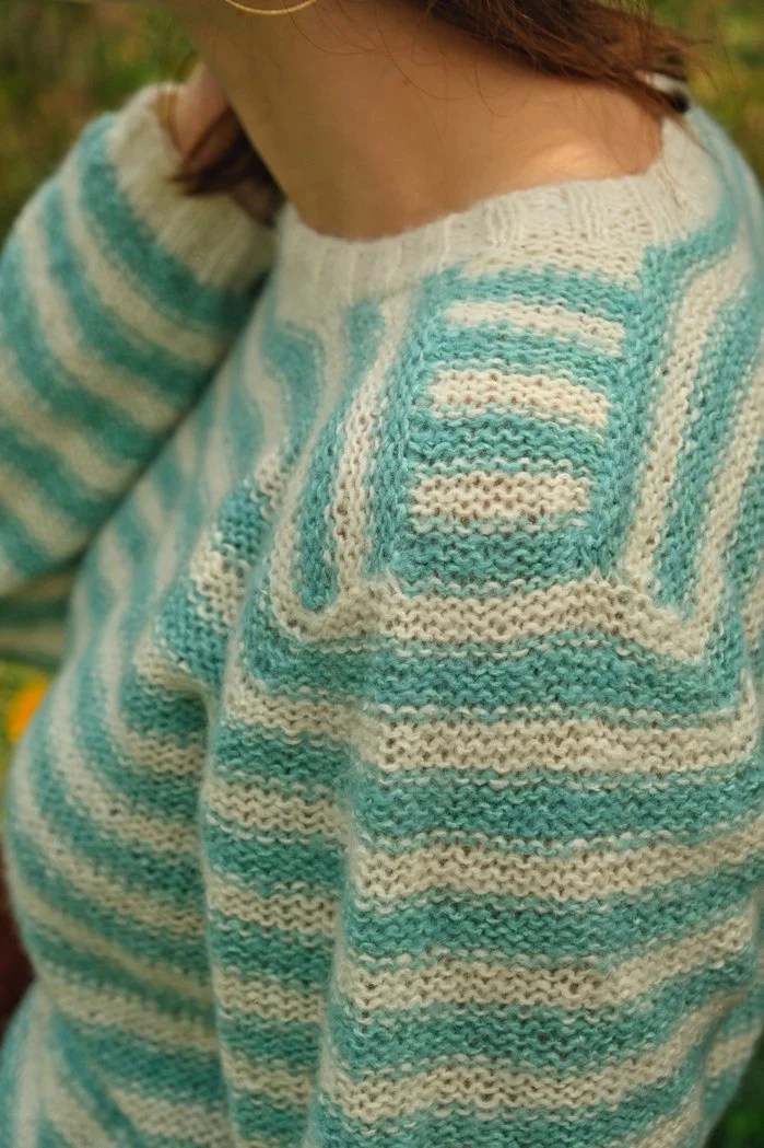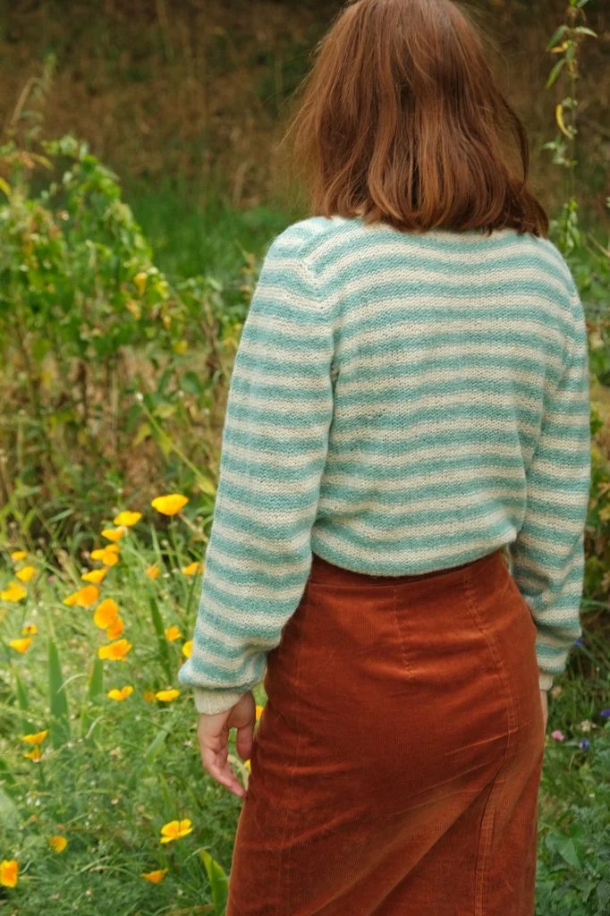 Grâce au fil le pull est léger comme une plume et extrêmement doux sur la peau. Cette nouveauté est une petite merveille et j’ai voulu accentuer son aspect duveteux en travaillant en jersey envers. Je vous laisse découvrir les beaux coloris concoctés chez Couleurs & Textiles par La Droguerie, il y a de quoi faire de belles rayures ! Je vous invite d’ailleurs à voir les belles versions de mes testeuses sur Ravelry, où vous trouverez d’ailleurs toutes les informations sur le modèle et pourrez télécharger le patron.