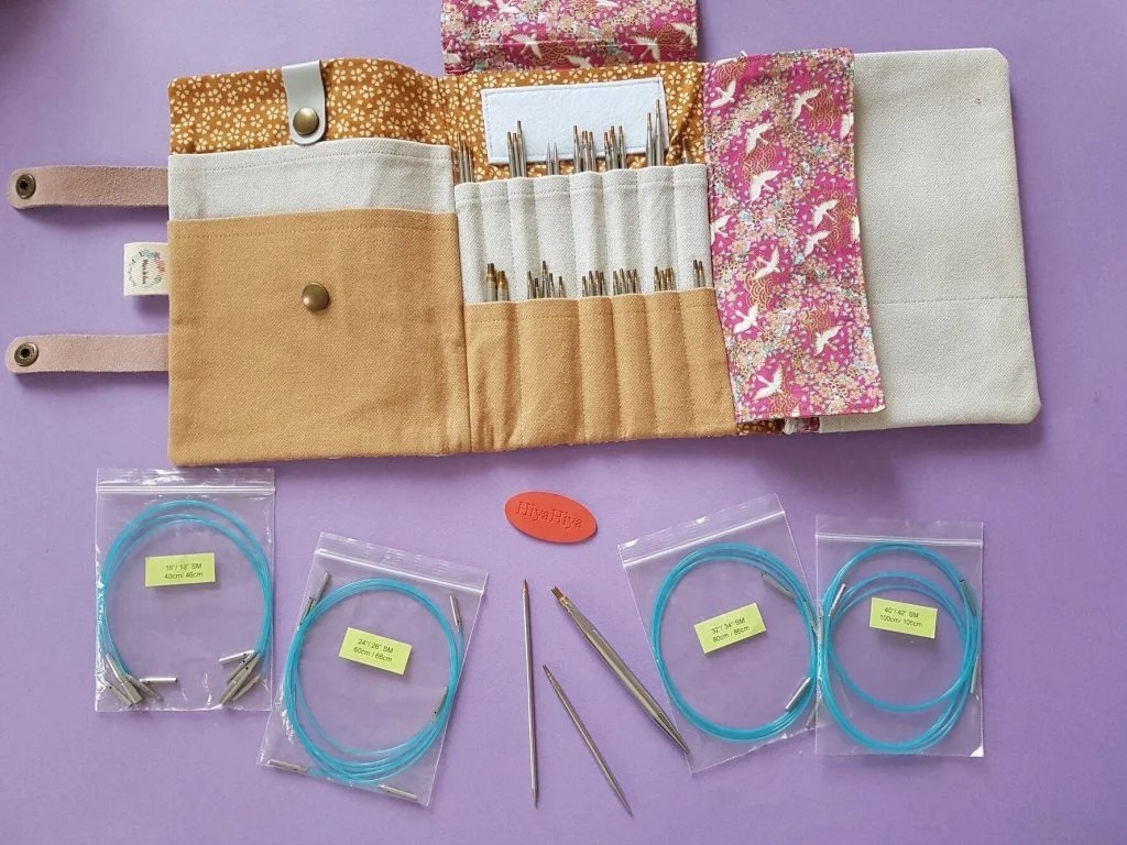 Si vous avez jeté votre dévolu sur une marque en particulier, vous pouvez acheter un kit d’aiguilles interchangeables : dans une petite pochette, vous aurez un câble de chaque longueur et une paire d’aiguille de chaque diamètre. Ça revient moins cher qu’au détail SI ON UTILISE TOUTES LES TAILLES D’AIGUILLES. Je dis ça parce que si on ne tricote qu’en 3,5 et en 4 mm, il sera plus économique d’acheter une paire de pointes de 4, une paire de pointes de 3,5 et deux ou trois câbles que d’acheter un kit à 4 câbles et 10 paires de pointes.