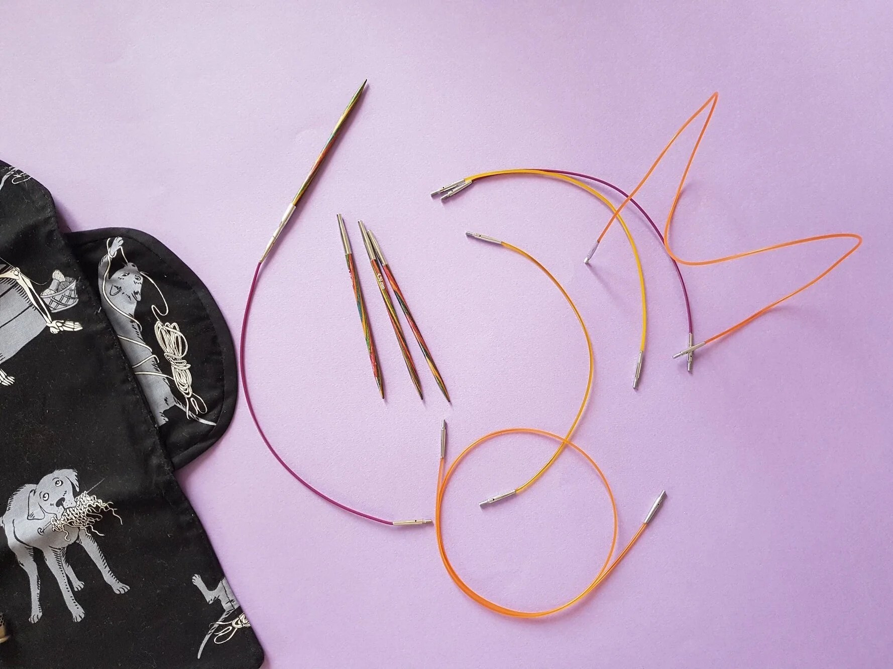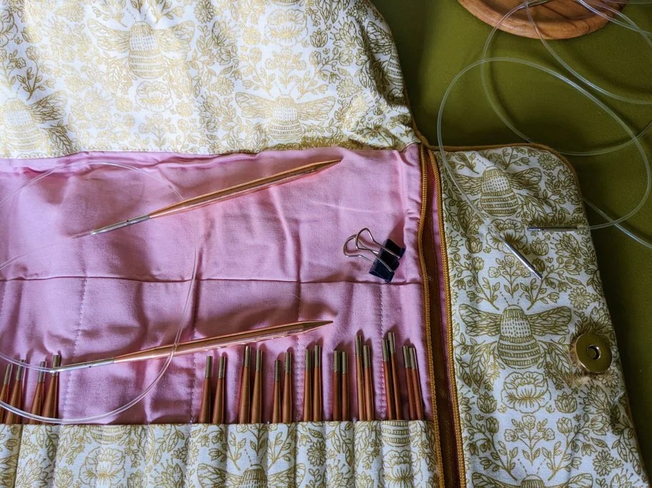 Une paire d’aiguilles fixes Knit Pro, qui sont très bien, on sent un peu plus la jonction câble / aiguille que sur les Chiaogoo mais elles sont bien pointues et agréables.
