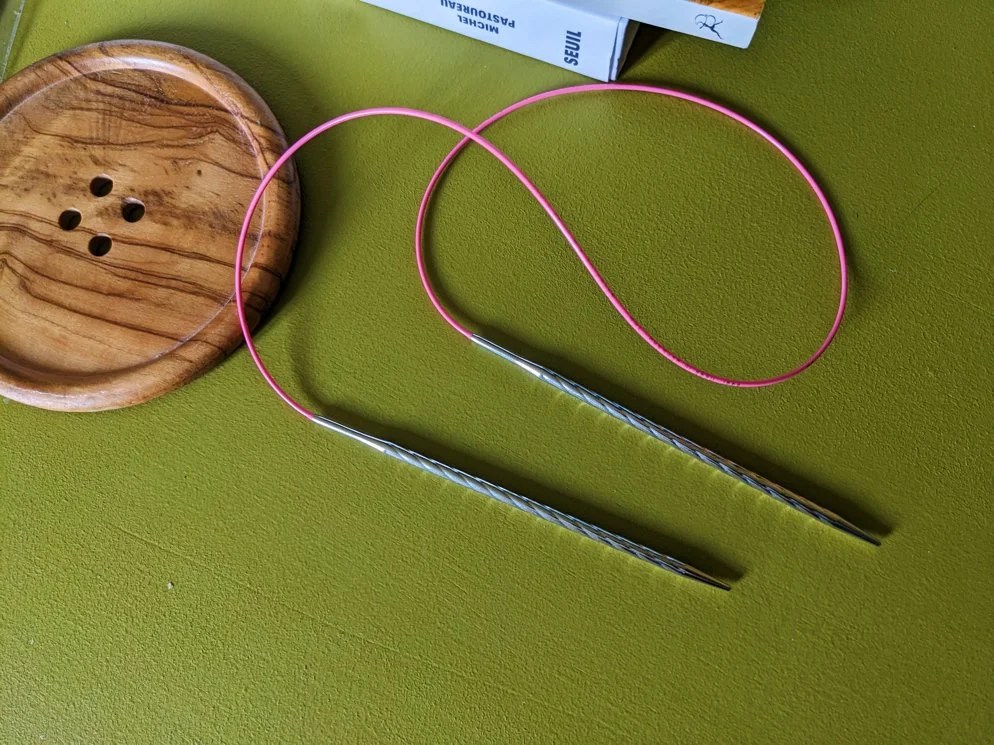 Ici une paire d’aiguilles Addi, qui est pas mal.
