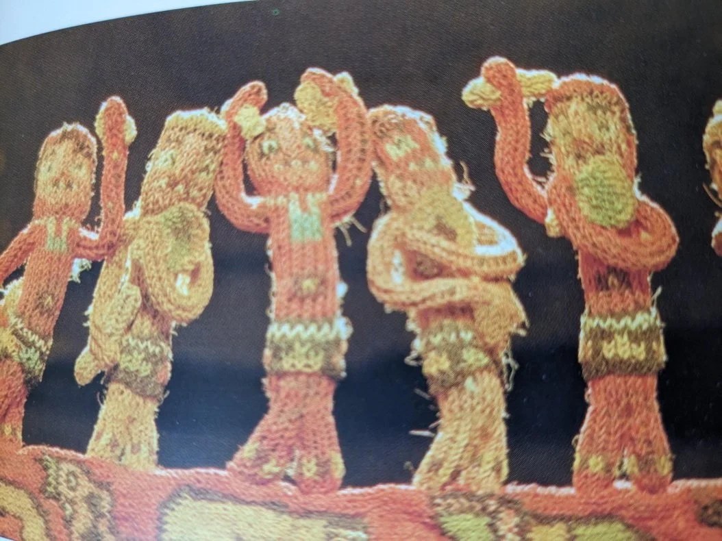 2. On dirait un jeu de marionnettes, des personnages dans une fête qui dansent et font de la musique. Le genre de pagne qu’ils portent me fait penser à l’Asie, peut-être même une île du Pacifique ?