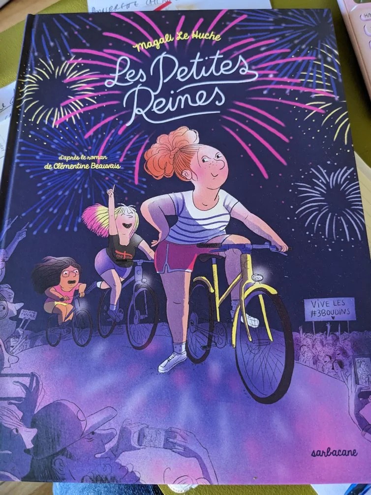 Je vais rester d’humeur BD cette semaine puisque je me suis empressée de mettre la main sur la dernière BD de Magali Le Huche « Les petites reines ». Je vous la conseille c’est très mignon et ces 3 ados, élues Boudins de l’année dans leur collège qui entreprennent un Bourg-en-Bresse / l’Élysée à vélo, sont vraiment attachantes.