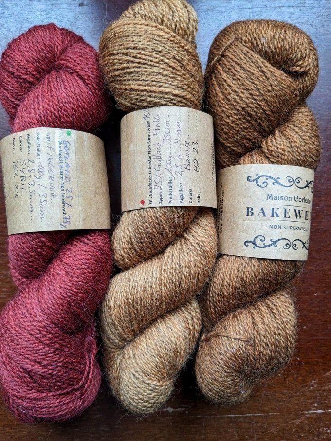 En faisant un petit coucou chez Maison Corlène je me suis laissée aller à acheter 3 écheveaux de Gotland pour Arnaud qui a besoin d’une étole à mettre sur ses épaules quand il travaille. Il a choisi ces 3 coloris.