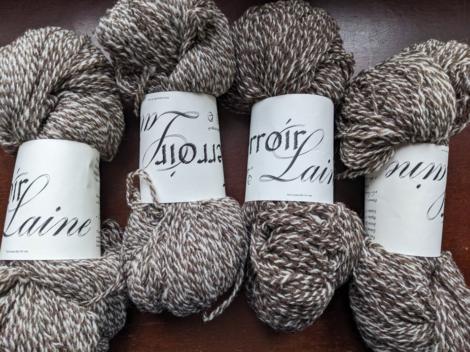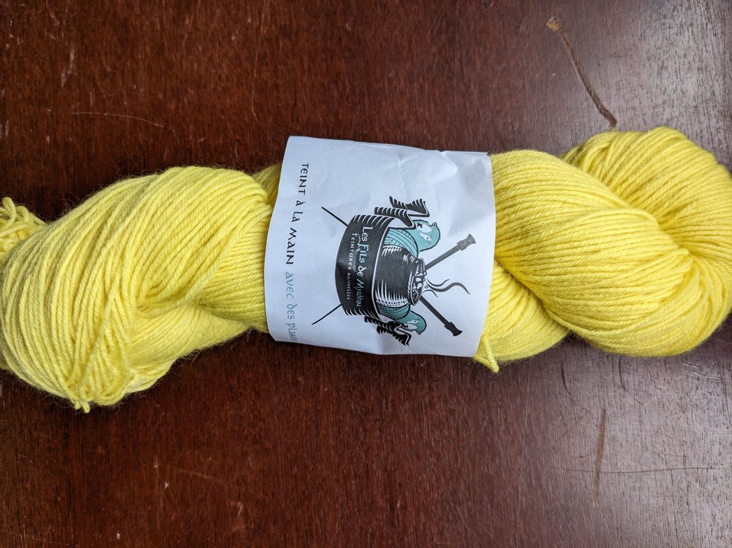 J’ai rencontré Maxime le teinturier alsacien derrière la marque Les fils de Myrdhin en dinant chez Gaëlle et Jules de Terroir Laine et j’ai flashé sur son jaune à chaussettes teint à la gaude. Je suis également repartie avec les 2 nouveaux chinés Terroir Laine pour essayer. J’aurais bien envie de me faire, après le châle tricoté l’an passé, un pull Voyage assorti !