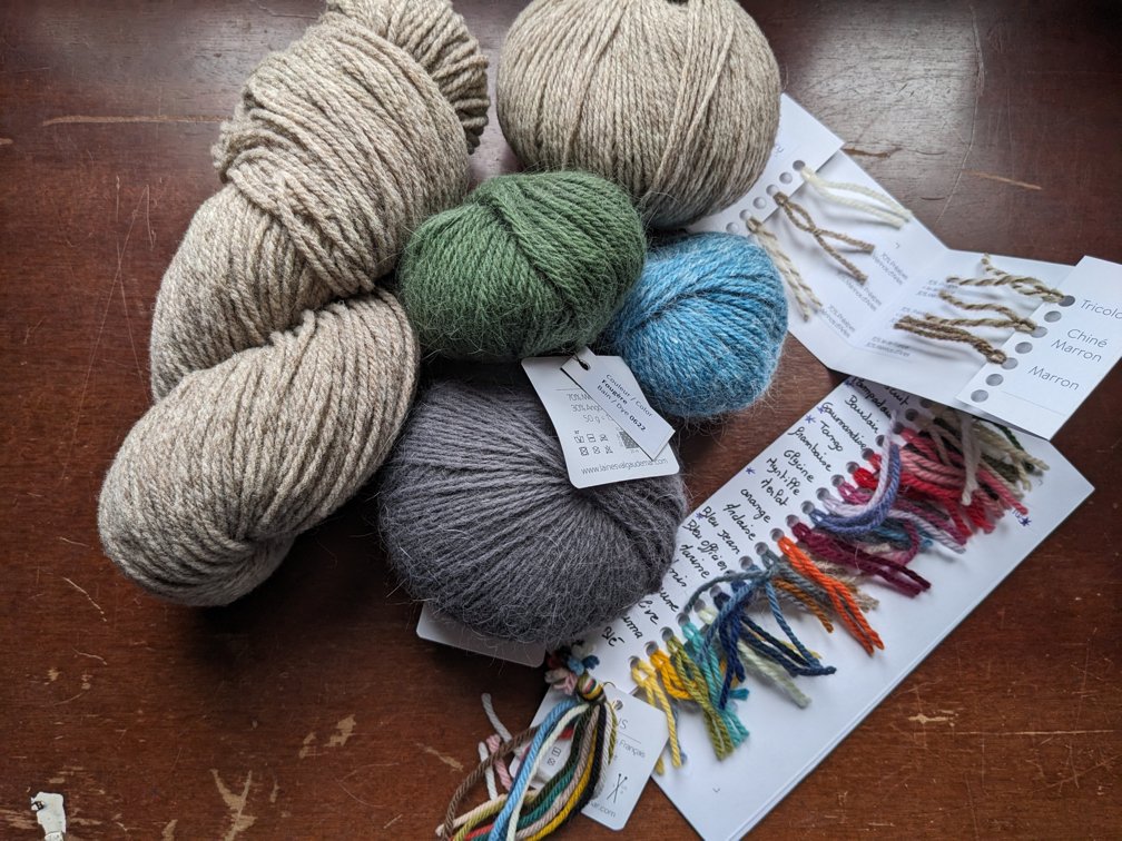 J’ai pu enfin voir Marie-Laure de la Filature du Valgaudemar avec qui je suis en contact depuis plus de 3 ans quand elle a repris l’établissement. J’ai par le passé énormément travaillé avec la Filature (outre les modèles que j’avais créé avec leurs fils je leur avait refait des gammes de couleur) et depuis les qualités de fils ont un peu changé, ils ont décidé de ne faire que du 100% français. Je suis donc repartie avec échantillons et nuanciers.