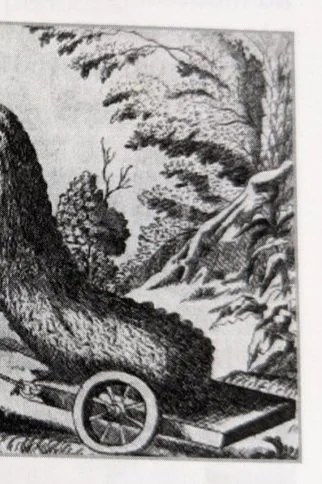 6. Comme la question de la semaine précédente abordé un redoutable ennemi de la laine, je me dis qu’on reste peut-être dans le même domaine aujourd’hui… Cette représentation doit être celle d’un loup tueur de mouton, ennemi des bergers et des producteurs de laine…Je vais donc supposé que ce bout d’image nous montre la queue cassée d’un loup après avoir été prise dans un piège (à loup) et qu’une âme charitable a soignée en lui fabricant une attelle à roulette fixée au corps avec un harnais… ?Bon we à toutes