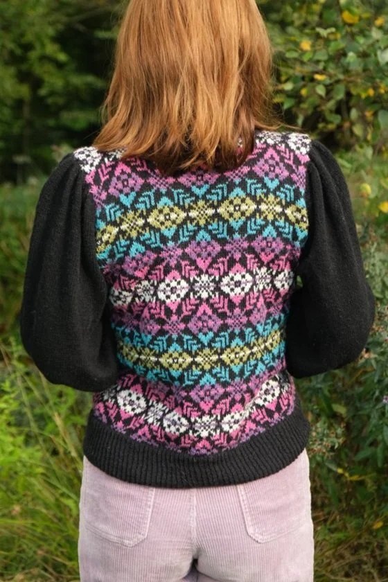 Je viens vous donner quelques nouvelles ici ! Le mois de novembre a malheureusement été synonyme pour moi du grand retour du tricot méthode portugaise. J’ai beaucoup retricoté à l’anglaise depuis septembre ma main étant moins douloureuse et je l’ai payé après quelques semaines. Pour me donner du baume au cœur j’ai décider de m’attaquer au jacquard qui a la réputation d’être très agréable tricoté ainsi et ce n’est pas un mensonge, je m’amuse comme une folle ! On le tricote sur l’envers et dès le départ ma tension était très régulière. Il faut juste prendre le coup de main pour croiser les fils mais ce n’est pas plus compliqué que quand on tricote un fil dans chaque main.
