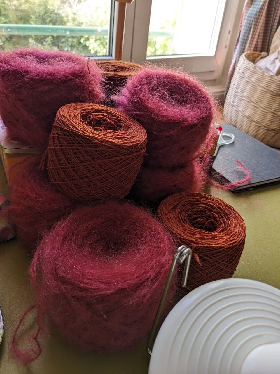 La belle Fluffy Mohair de chez Cowgirl Blues coloris Dusty Rose et ma découverte de la semaine, la Pérégrine de Christal LK. Vous connaissez sûrement ses modèles et ses vidéos Youtube, mais saviez-vous qu’elle propose une gamme de fil locaux (les brebis sont Lorraines, la laine est lavée en Belgique puis filée et teinte en France) ? J’ai jeté mon dévolu (je vous en parlais la semaine dernière) sur le Red Fox pour un châle, j’ai hâte, la texture bien sèche de ce fil me titille déjà.