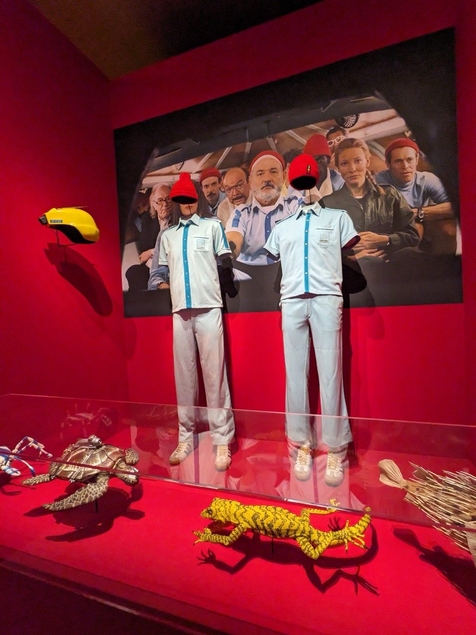Il s’est passé beaucoup de choses depuis la dernière fois ! Je suis allée à Paris quelques jours pour 3 tournages Artesane, c’était très agréable comme toujours. J’en ai profité pour faire un saut à la retrospective Wes Anderson à la Cinémathèque et outre le côté délicieux des maquettes, dessins, décors, partitions de thèmes de la bande originale etc fait main qui conforte tout le monde dans le fait que les gens, c’est mieux que l’IA et que la colle, les ficelles et les crayons, c’est mieux que la 3D quand on veut partager et laisser une trace émouvante, j’ai repéré des tricots !