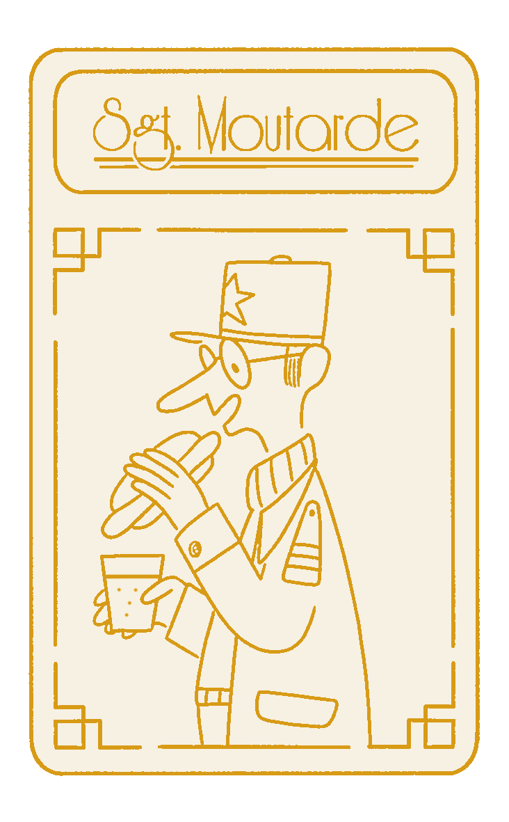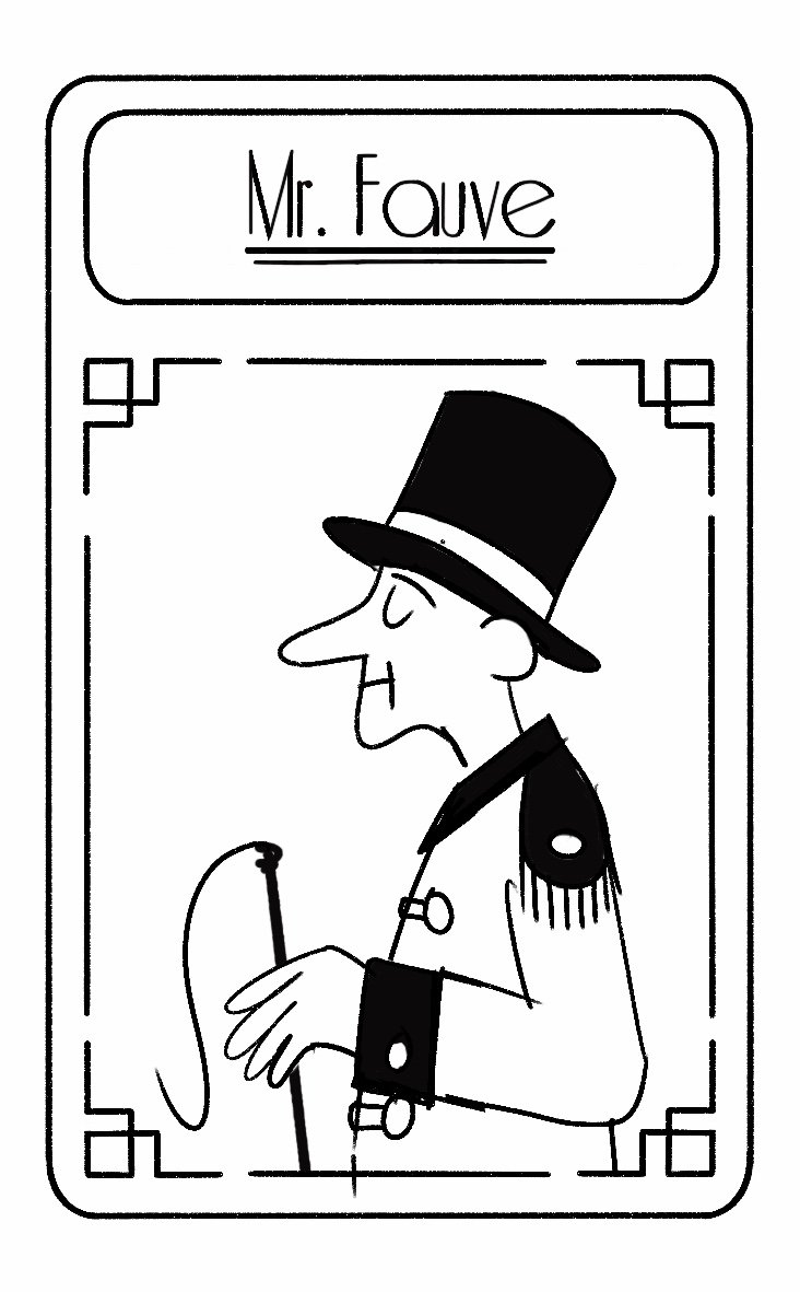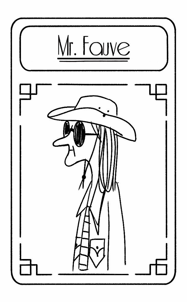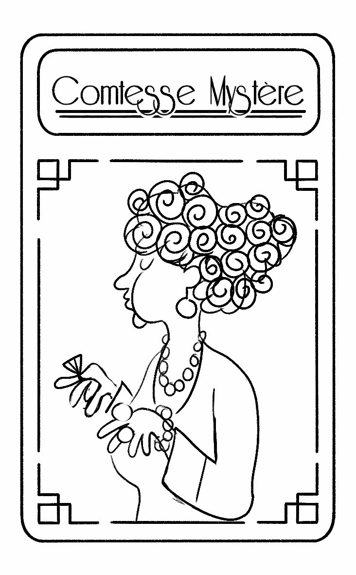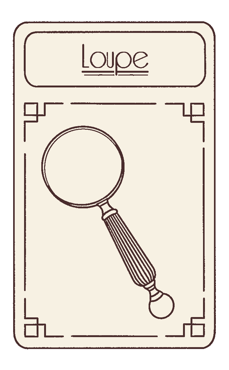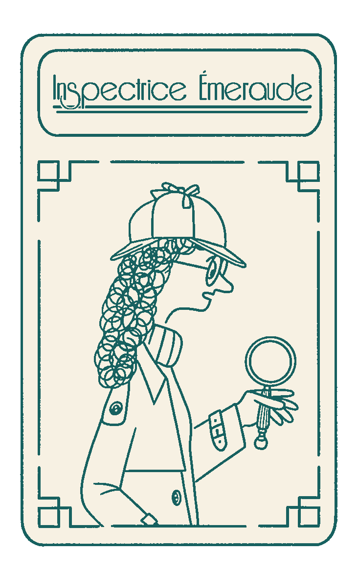 Dans l’idée de « l’enquête dont vous êtes le héros », j’avais déjà anticipé de proposer des possibilités de choix d’indices différents et j’ai décidé d’inviter chaque participant(e) à incarner un personnage, caractérisé par la couleur choisie pour le kit. J’ai donc fait une sélection de coloris possibles, et attribué à chacun un nom et une personnalité. J’ai laissé Arnaud Boutin mettre en image chacun de ces personnages. Il a eu le champ libre, j’avais juste partagé avec lui la brève description des personnages, les échantillons de couleurs choisies et un rapide tableau Pinterest reprenant des plateaux de jeux et cartes Cluedo de différentes époques que je trouvais sympa.