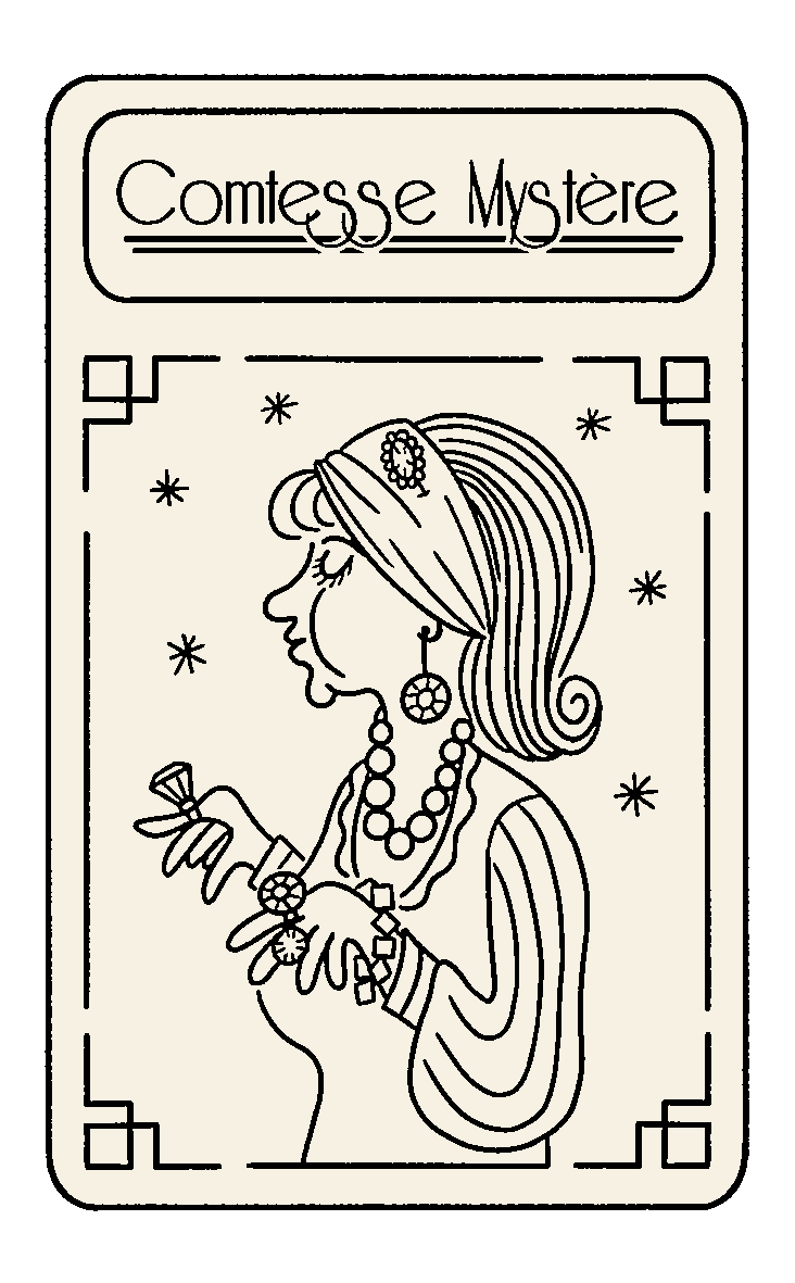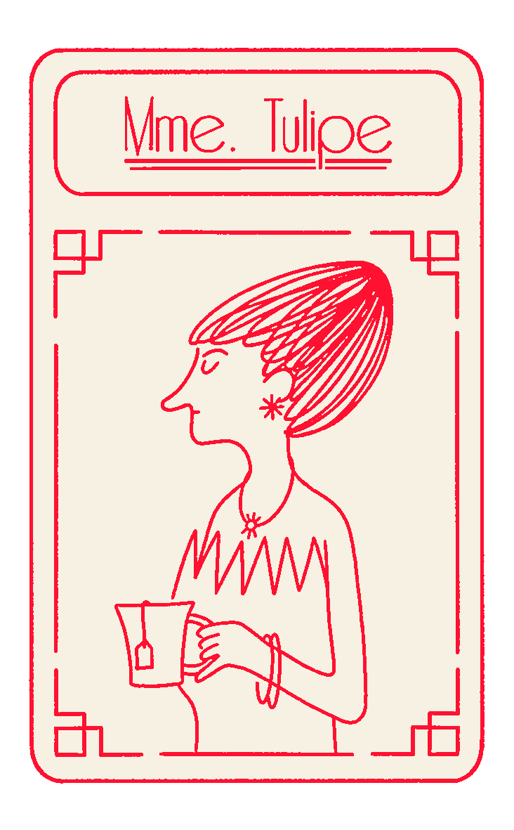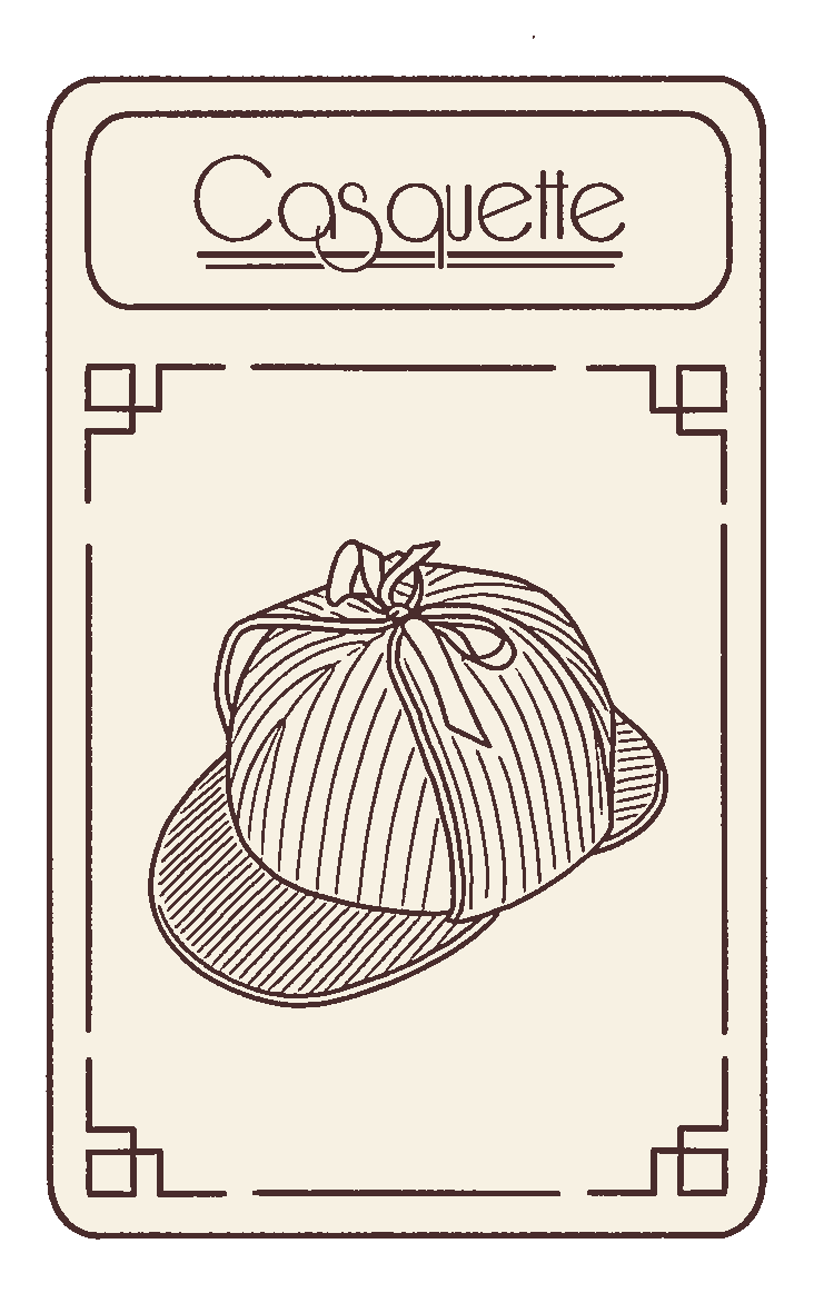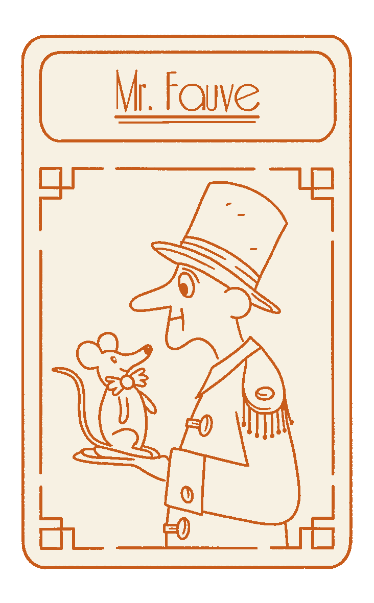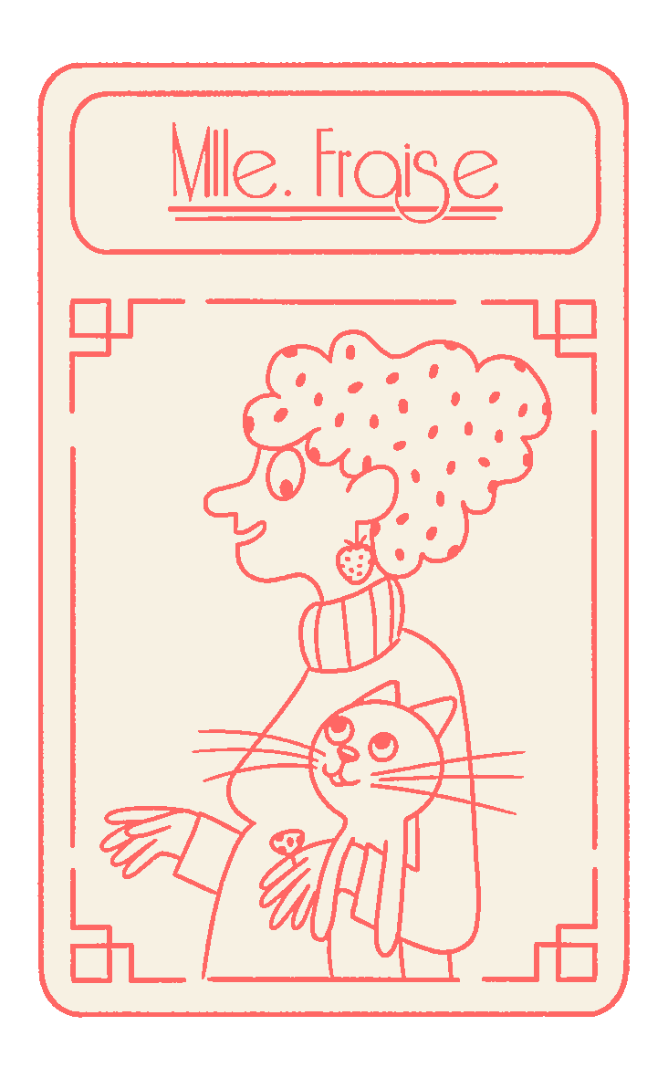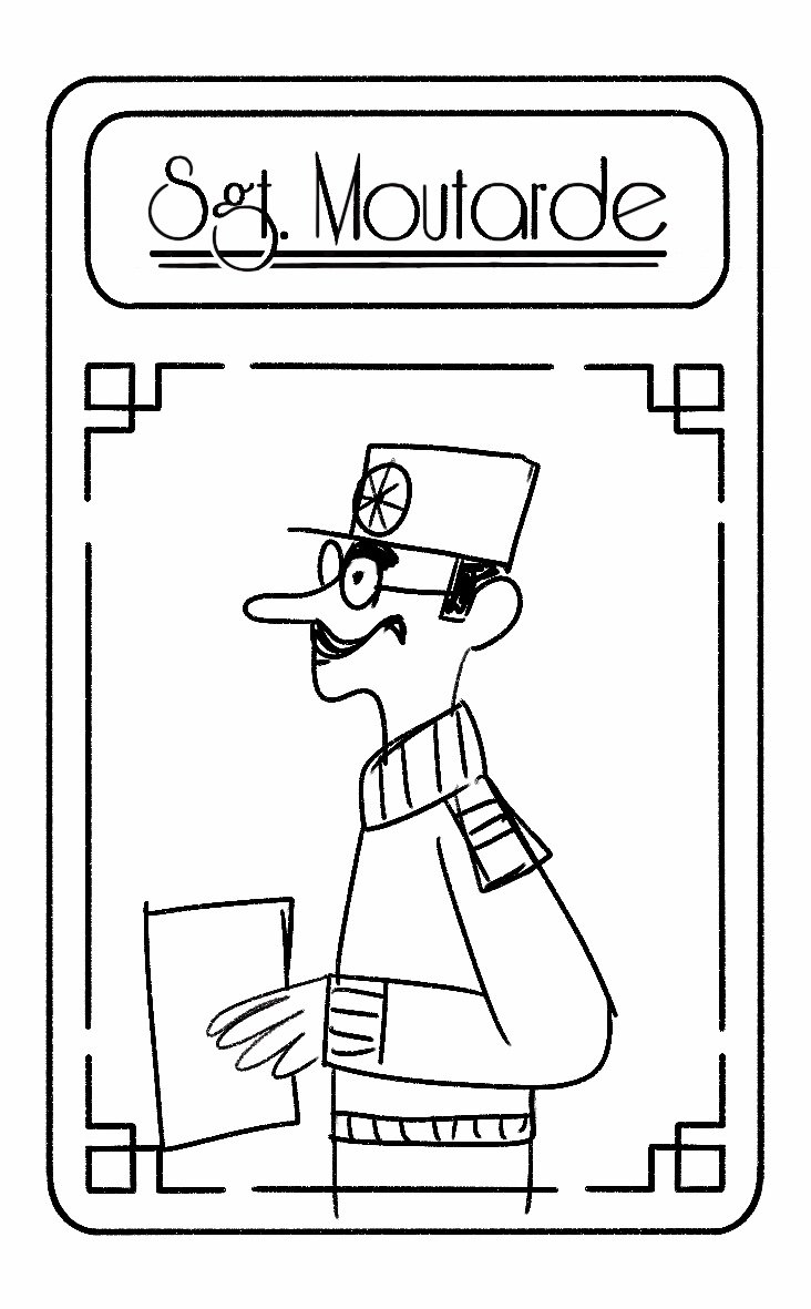 Dans l’idée de « l’enquête dont vous êtes le héros », j’avais déjà anticipé de proposer des possibilités de choix d’indices différents et j’ai décidé d’inviter chaque participant(e) à incarner un personnage, caractérisé par la couleur choisie pour le kit. J’ai donc fait une sélection de coloris possibles, et attribué à chacun un nom et une personnalité. J’ai laissé Arnaud Boutin mettre en image chacun de ces personnages. Il a eu le champ libre, j’avais juste partagé avec lui la brève description des personnages, les échantillons de couleurs choisies et un rapide tableau Pinterest reprenant des plateaux de jeux et cartes Cluedo de différentes époques que je trouvais sympa.