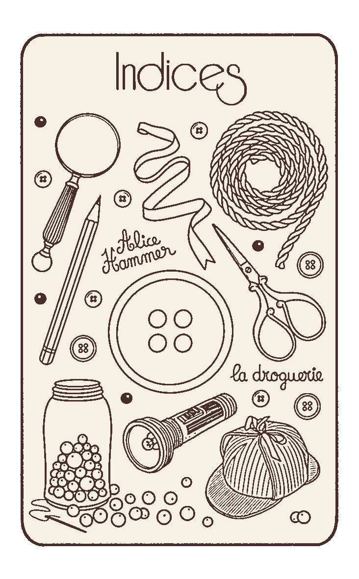 C’est peut-être grâce à mon côté Arabesque et Columbophile, j’avais en tête cette idée de Kal mystère sur le thème d’une enquête depuis un moment. Par ailleurs, je discutais depuis un moment avec Suzie de La Droguerie, partenaire de longue date, de faire quelque chose dans le cadre des 50 ans de l’enseigne alors pourquoi pas fusionner ces 2 projets ? Banco.