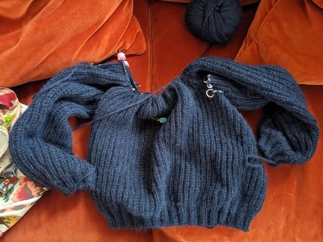 C’était la traditionnelle parenthèse informatique, parlons à présent tricot parce que oui, je tricote, je tricote lentement mais sûrement mon pull raglan en My Joy de Gepard Garn en bottom-up (de bas en haut) et je me rends compte que ça faisait bien longtemps que je n’avais pas tricoté un pull raglan dans ce sens-là et, même si le top-down a ses avantages, ça me fait bien plaisir.
