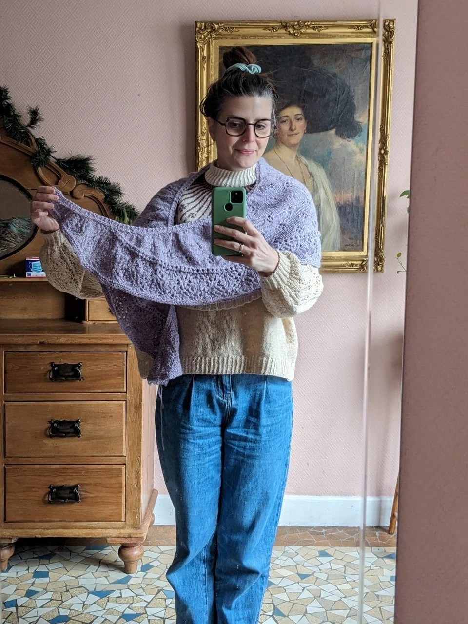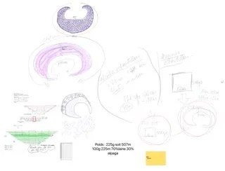Cette semaine j’ai patronné le petit châle et j’ai préparé le gros cours en Visio de demain sur, justement, les différentes constructions de châles.