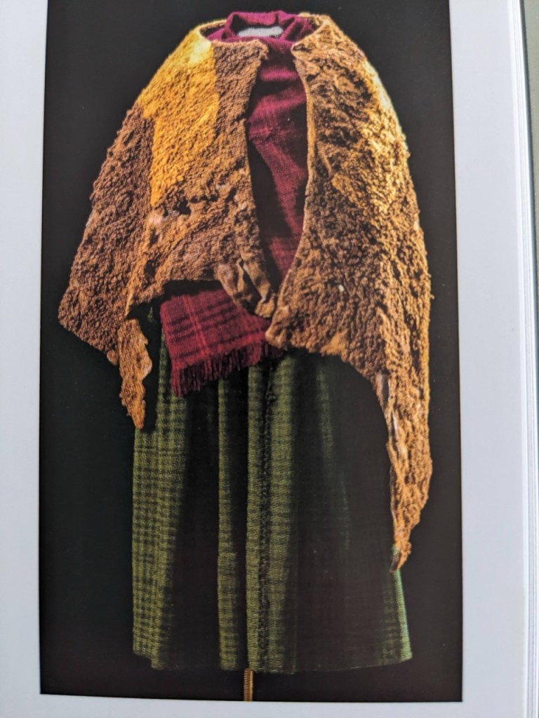 J’ai terminé la lecture table-basse (j’ai toujours un livre de chevet et un livre de salon) de Bog Fashion, c’était absolument passionnant. Vive les tourbières qui conservent si bien la laine. Cette tenue retrouvée sur la Femme d’Huldremose a 2000 ans.
