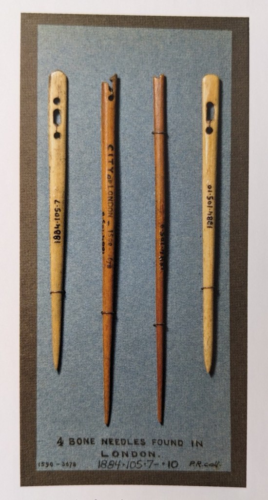 Voici donc à quoi devait ressembler la tenue, à l’époque. Ces aiguilles à coudre en os ont été retrouvées à Londres au XIXe siècle mais elles datent également de l’âge de fer.