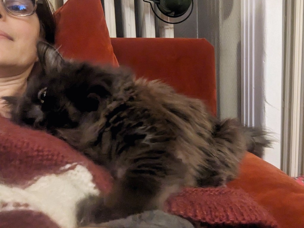Je n’écoute rien d’autre que Daniel Pennac me lire les Malaussène en audiobook (j’en suis au tome 4), j’ai lu La sagesse des nonnes et bien que très intéressée par le sujet je n’ai pas accroché avec le ton du livre un peu trop « cool » à mon goût. Je n’ai pas toujours adhéré aux parallèles faits entre les époques. J’ai péniblement lu La Dame du Lac de Water Scott, j’ai lu qu’il avait inspiré Schubert pour l’écriture de l’Ave Maria. Il a dû avoir la chance d’avoir une édition imprimée correctement, ça ne m’était jamais arrivé de tomber sur un livre imprimé n’importe comment. Les notes qui devraient être en bas de page coupent des mots et il y a plein de fautes. J’ai commencé hier soir Le livre des vies, mémoires écarlates, l’autobiographie de Margaret Atwood. Tout m’a l’air imprimé comme il faut.