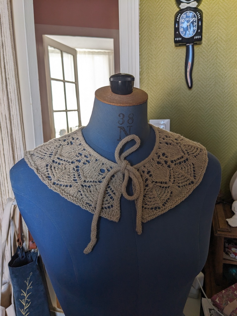 Depuis la dernière fois j’ai étoffé ma collection de bouts de chaussettes de cours et j’ai tricoté un col cucul en dentelle pour accompagner un prochain cours Artesane et pour contenter la Caroline Ingalls qui sommeille en moi. Je suis certaine que vous en avez une aussi.