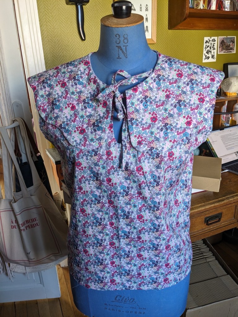 J’ai terminé de coudre le pantalon I am Harmonie qui me va très bien et comme je suis lancée avec les cols cuculs, j’ai commencé une blouse Valentine de Cha Coud.